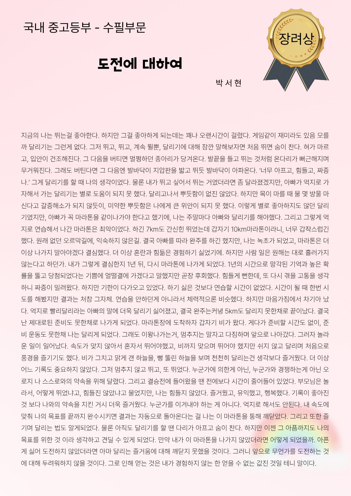 국내 중고등부 수필부문 장려상
