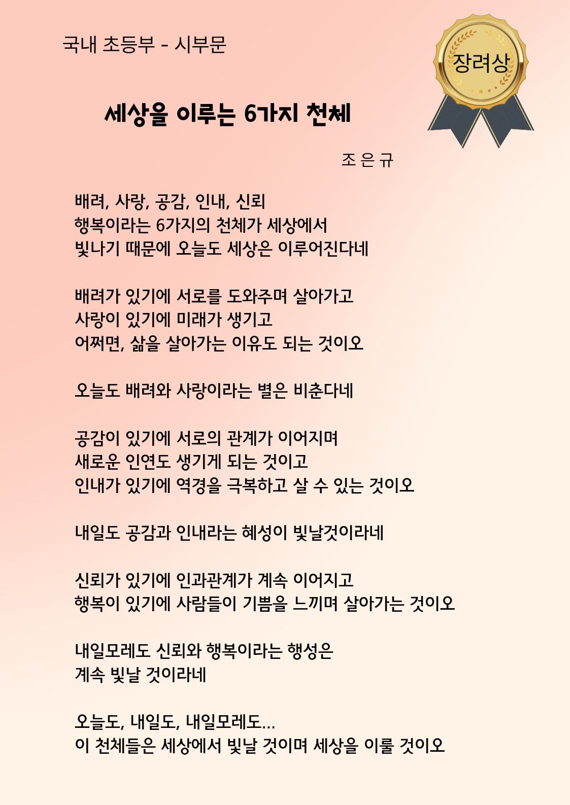 국내 초등부 시부문 장려상