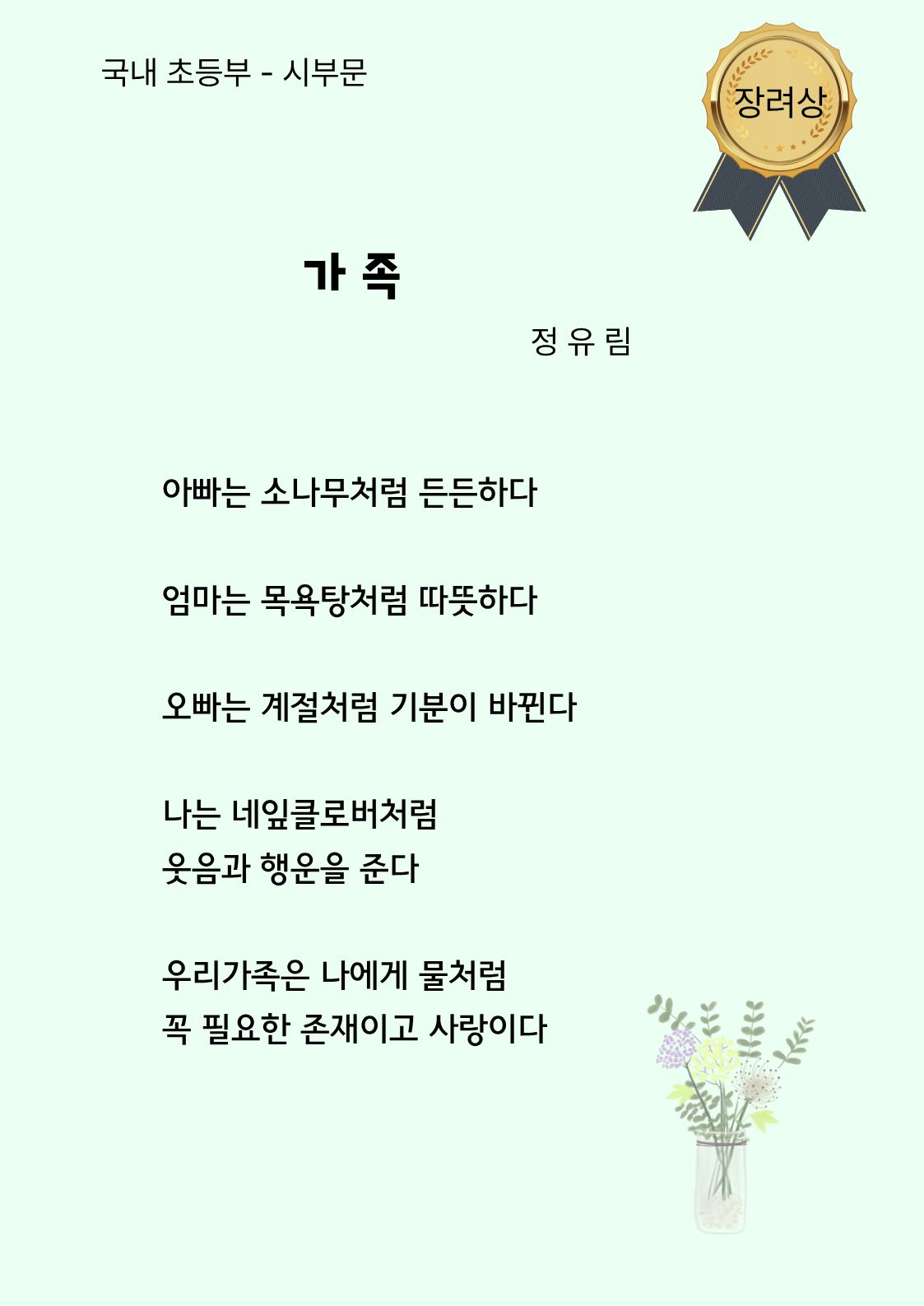 국내 초등부 시부문 장려상
