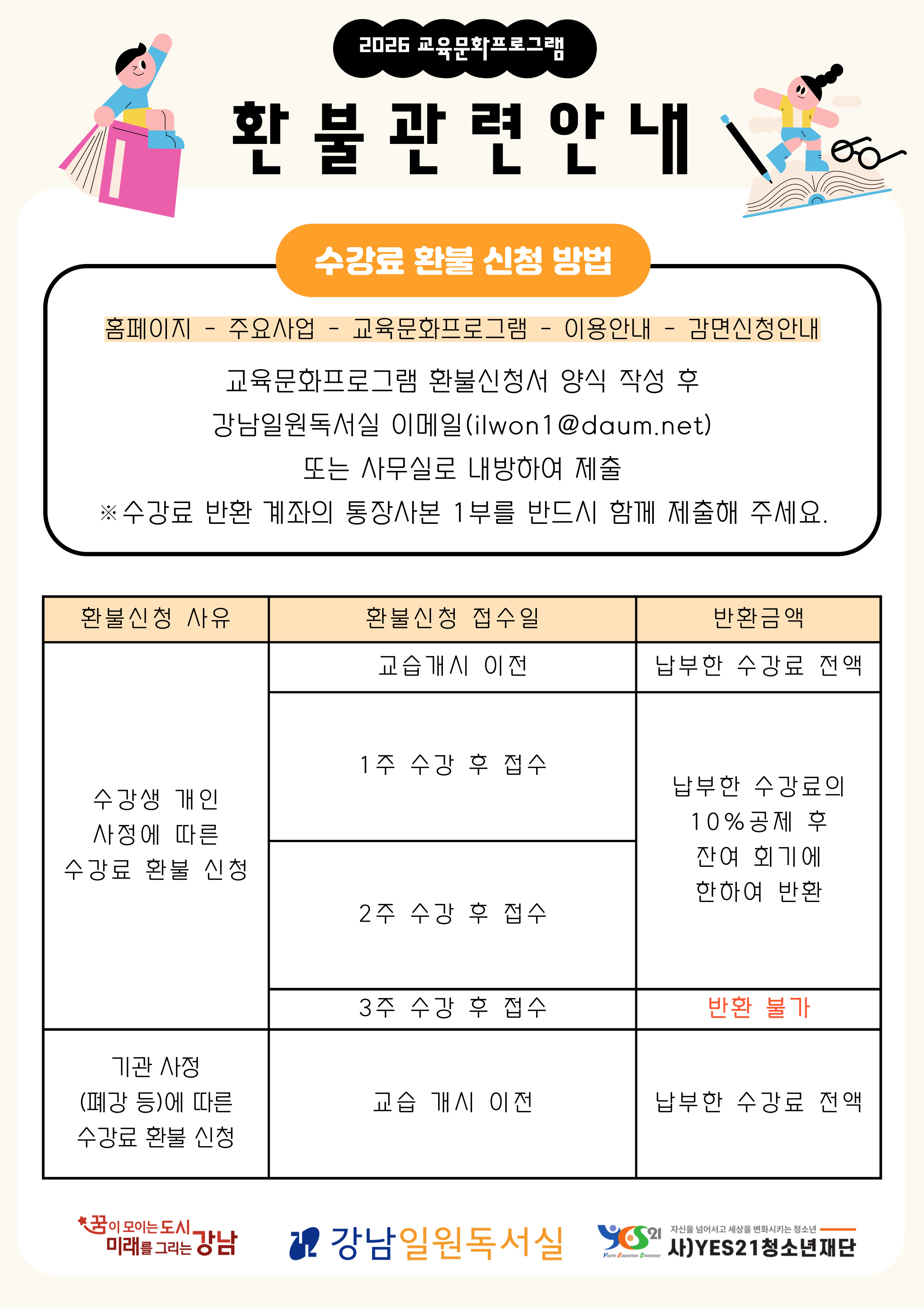 2026년 교육문화프로그램 환불신청 안내