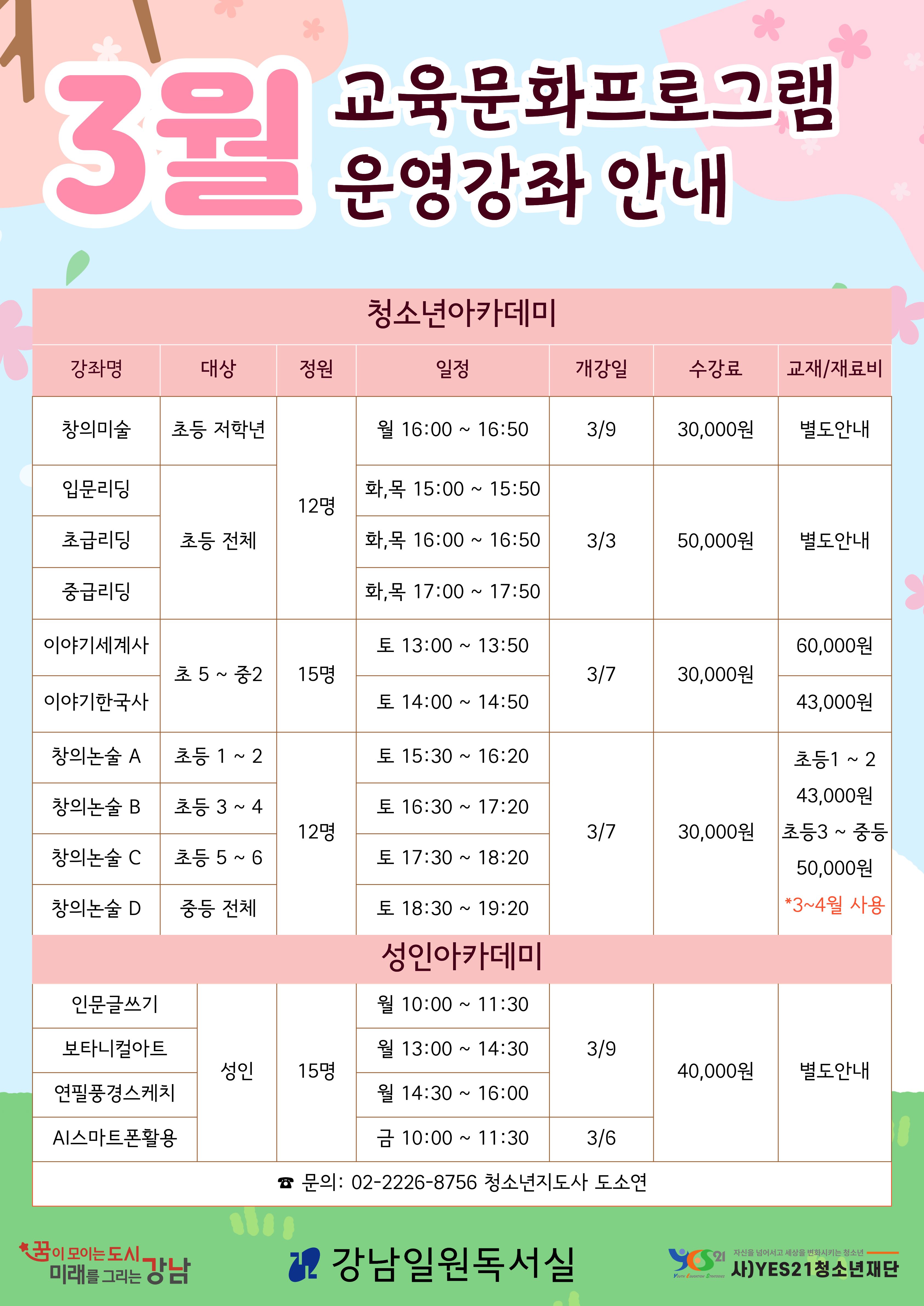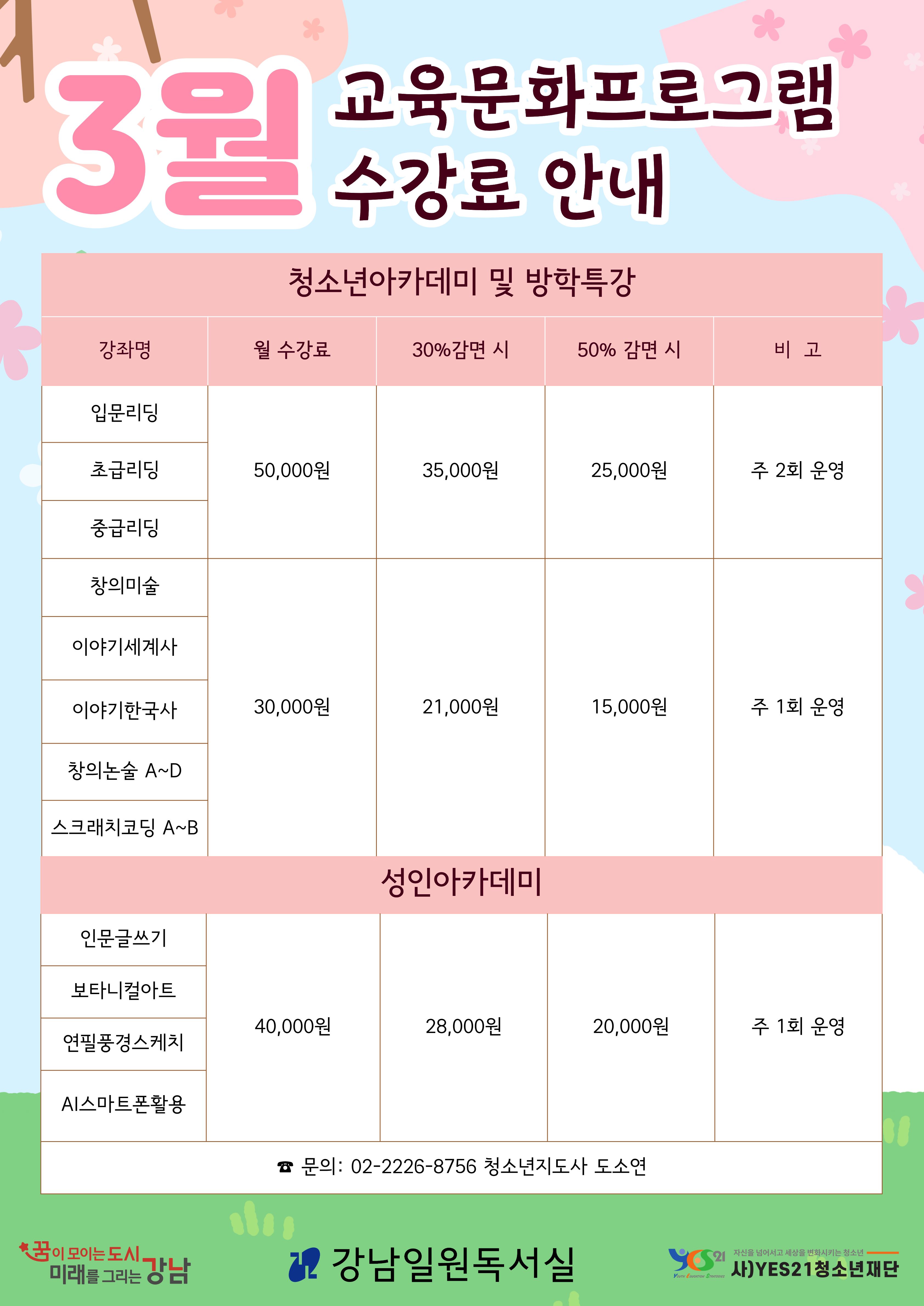 📢 2026년 3월 교육문화프로그램 운영사항 안내