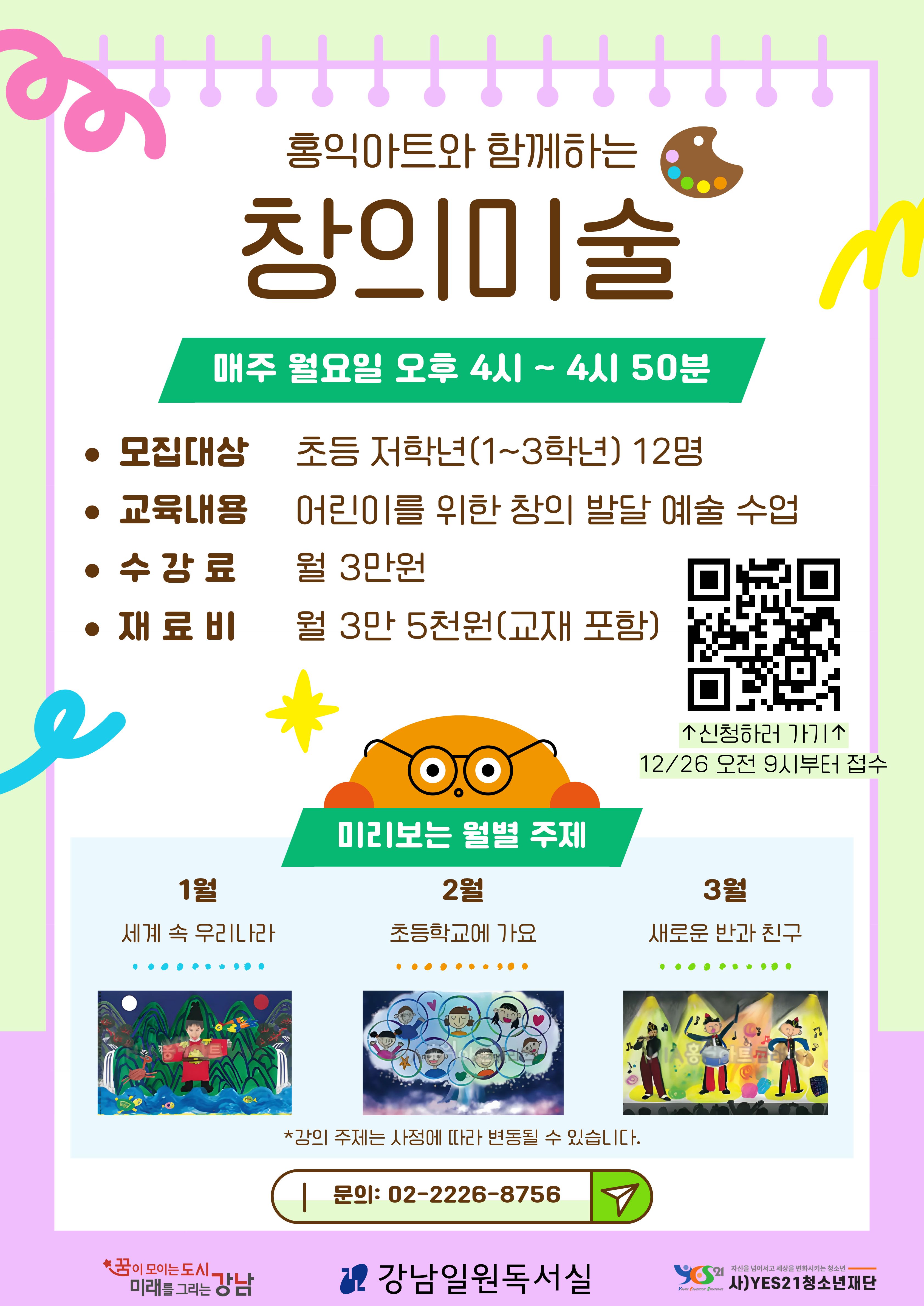 2026년 청소년아카데미 신규강좌 [창의미술] 수강생을 모집합니다!