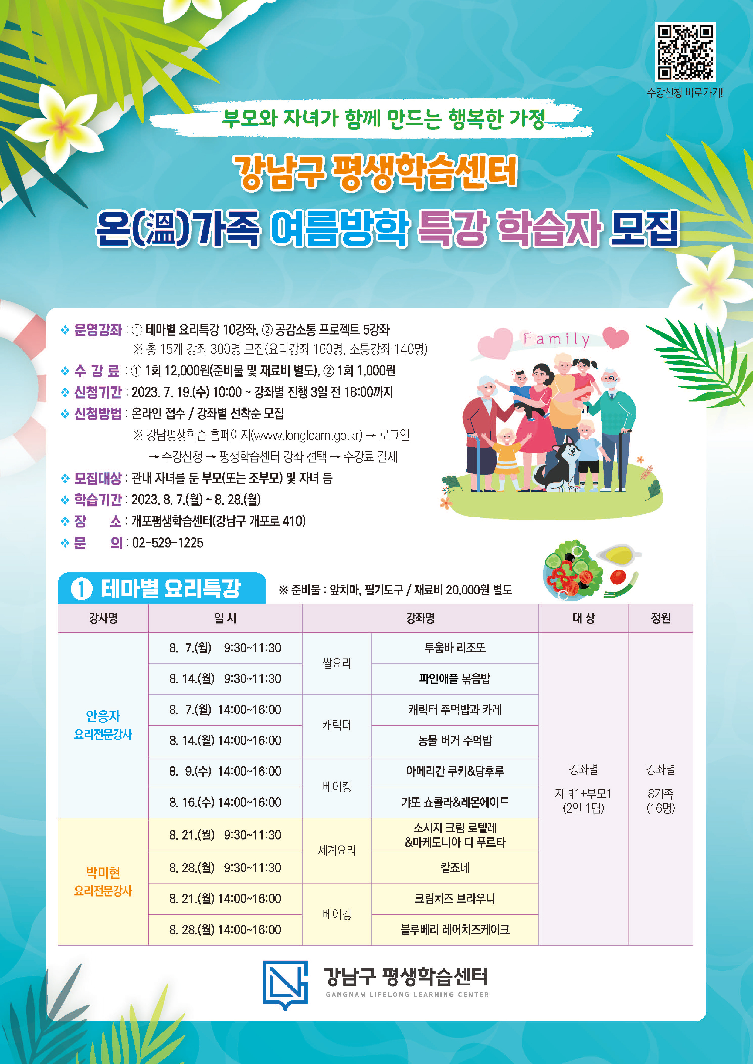수강신청 기간은 7월 19일(수) 10:00 ~ 강좌별 3일전 18:00까지 입니다.