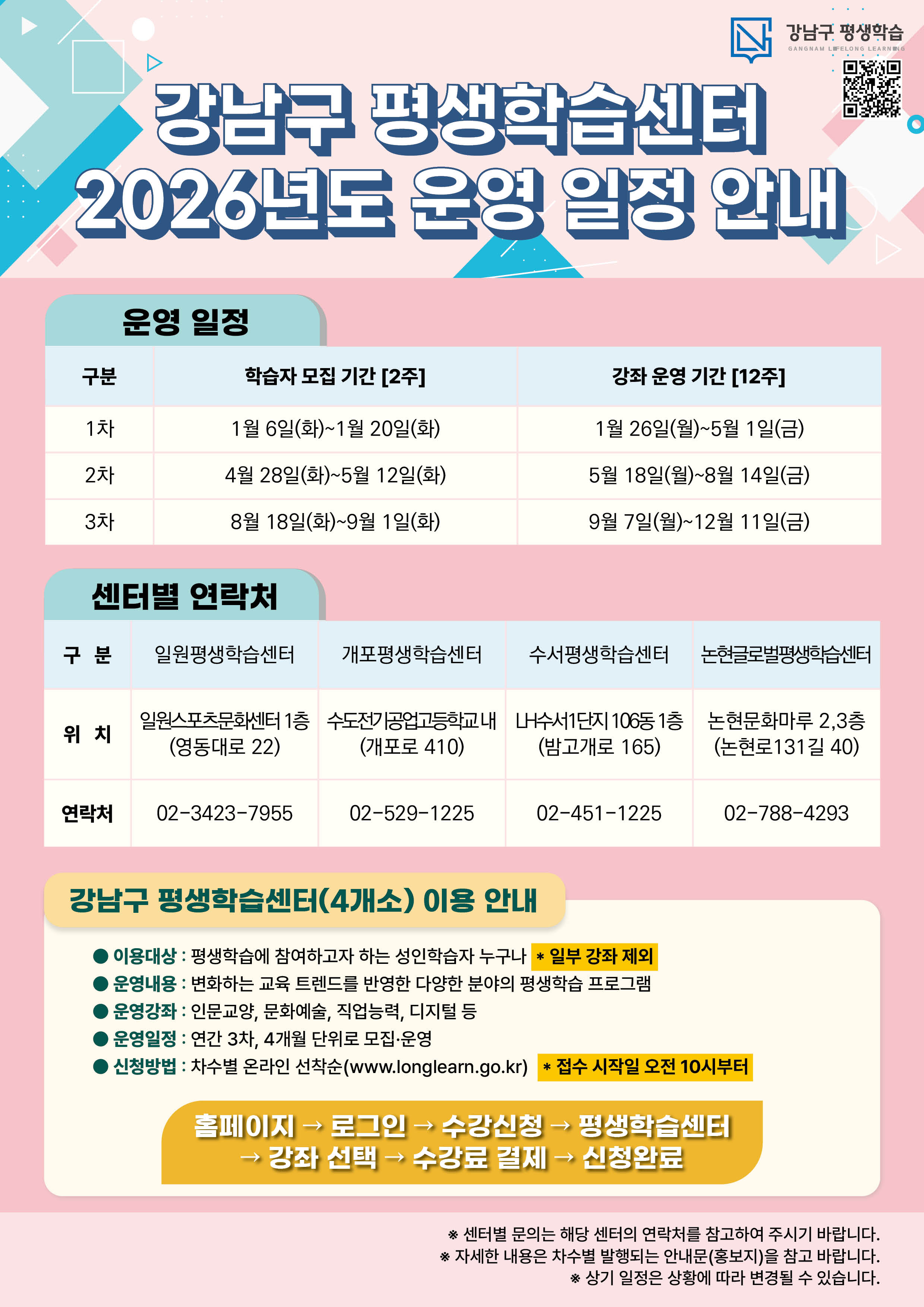 2026년 강남구 평생학습센터 운영 일정 안내