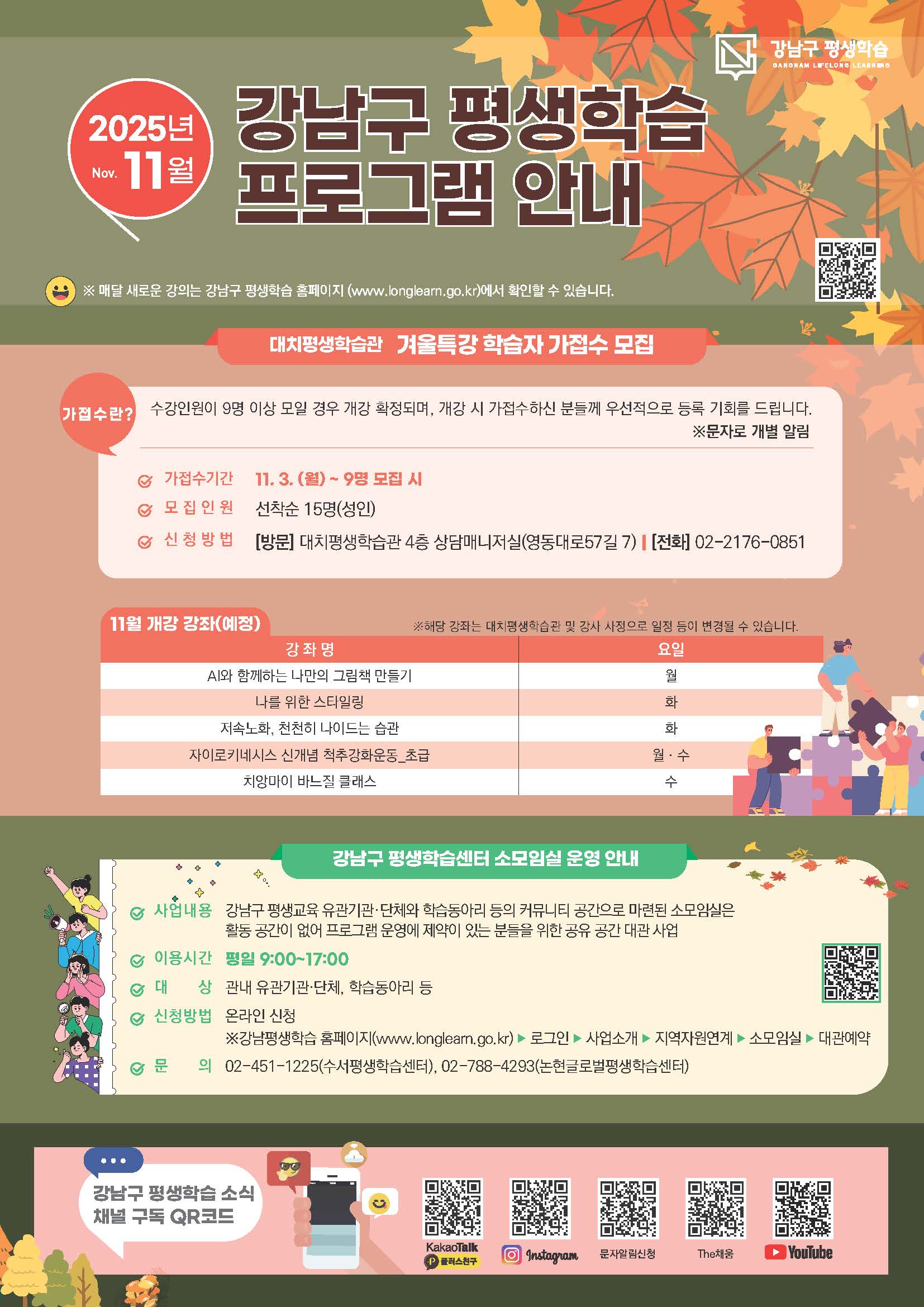 2025년 11월 강남구 평생학습 프로그램 안내