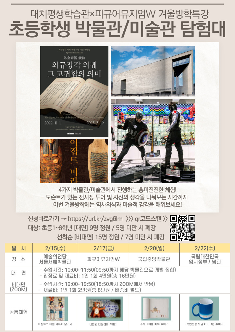 ▶ 수업명: 대치평생학습관×피규어뮤지엄W 겨울방학 특강 초등 박물관, 미술관 탐험대