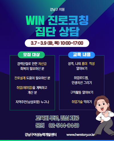 강남구여성능력개발센터가 여러분의 진로결정에 도움을 드립니다 .