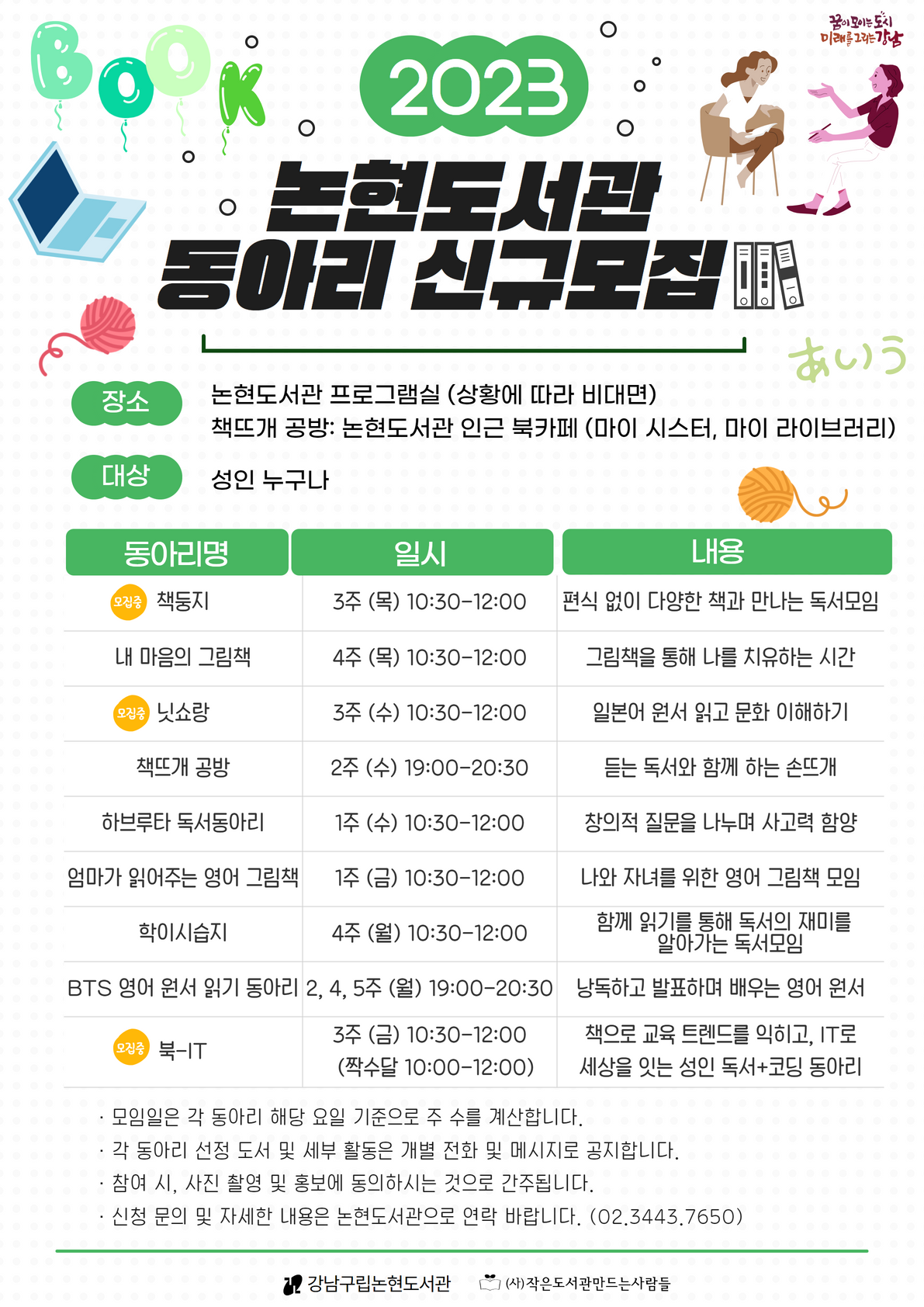 [강남구립논현도서관] 2023 논현도서관 동아리 신규모집