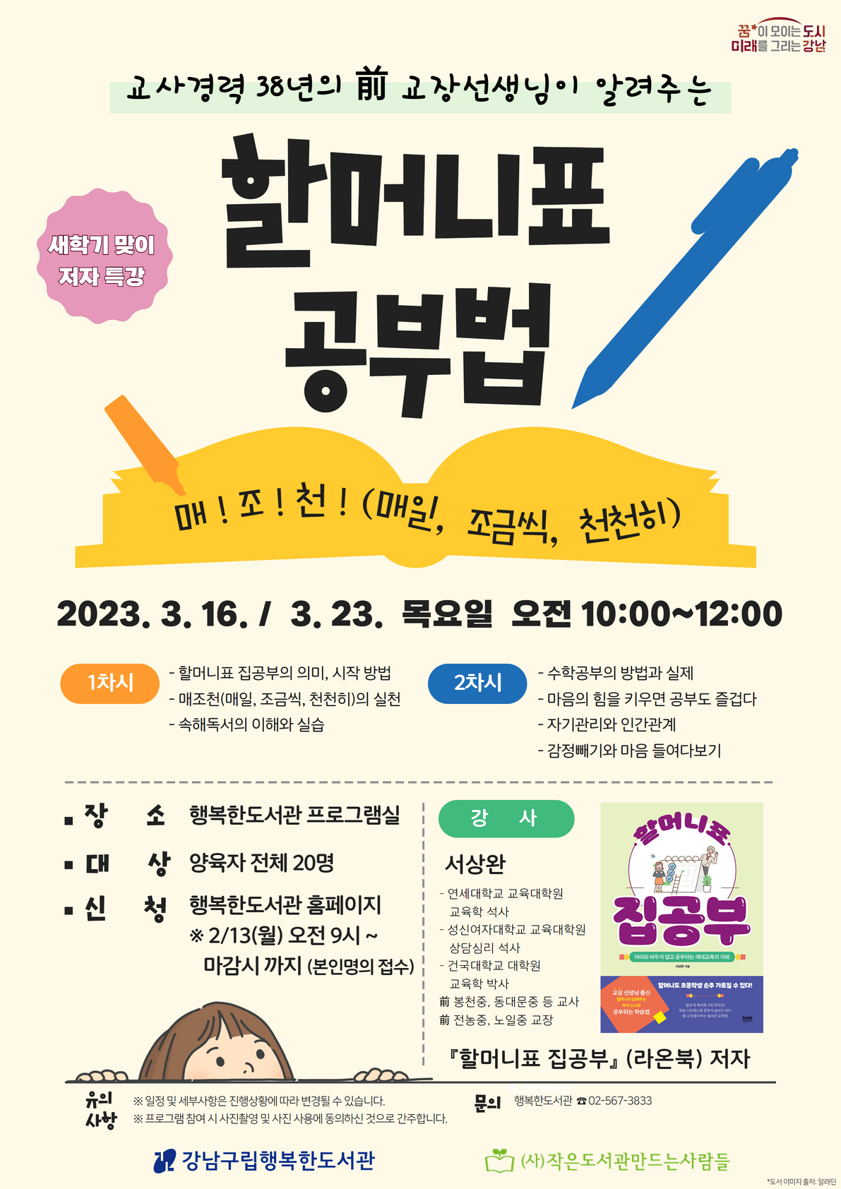 [강남구립행복한도서관] 할머니표 공부법 - 『할머니표 집공부』 저자 특강