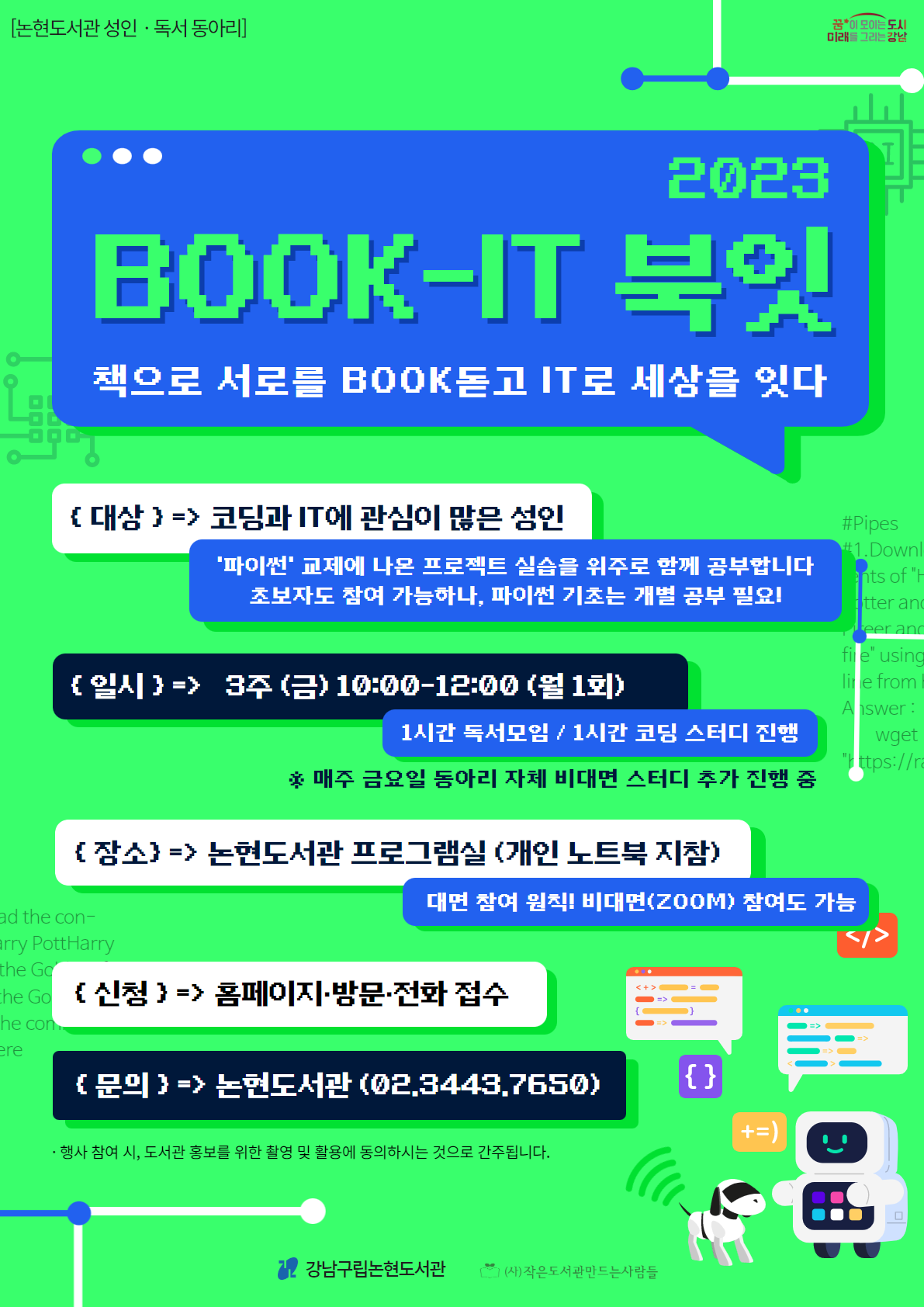 [강남구립논현도서관] (성인 독서ㆍ코딩 동아리) 북잇(BOOK-IT)