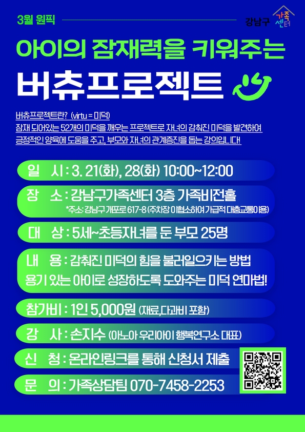 - 문의: 강남구가족센터 가족상담팀 070-7458-2253