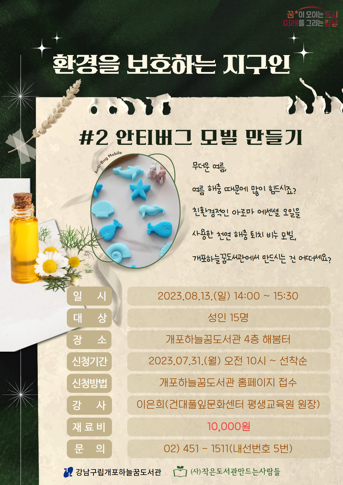 [개포하늘꿈도서관] 환경을 보호하는 지구인 #2 안티버그 모빌 만들기