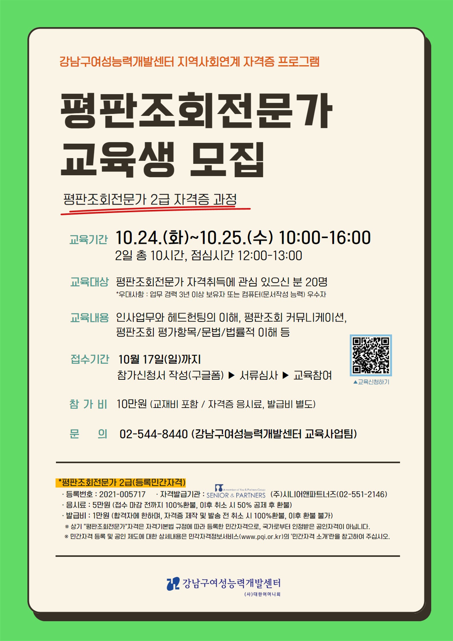 [강남구여성능력개발센터] 평판조회전문가 양성과정 교육생 모집