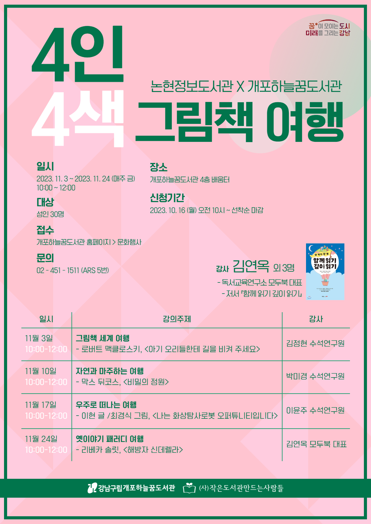 ○일 시 : 2023. 11. 3. ~ 11. 24. (매주 금) 10:00~12:00 (총 4회)