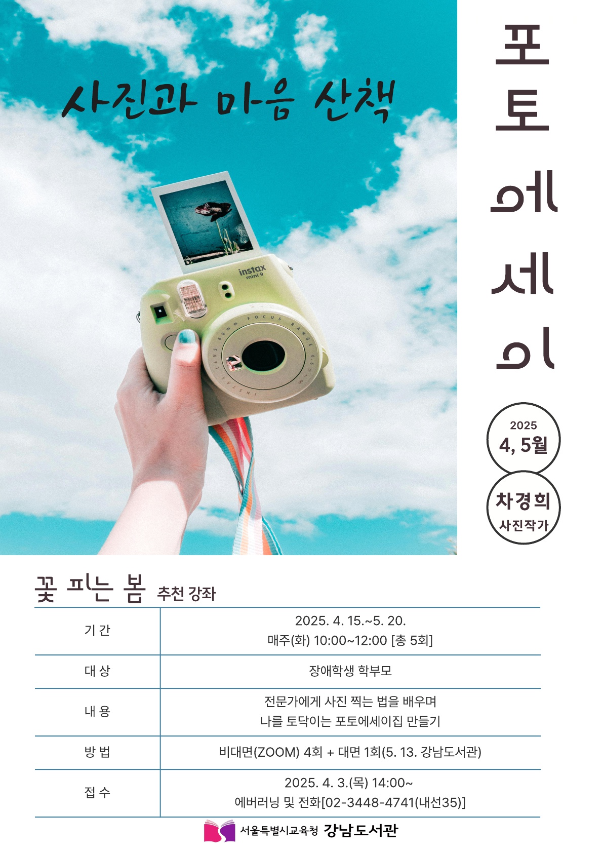 ❍ 운영기간: 2025. 4. 15. ~ 5. 20. 매주(화) 10:00-12:00(2시간) [총 5회]