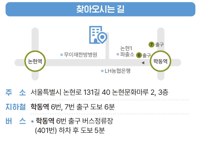 | 논현글로벌평생학습센터 | 서울특별시 강남구 논현로 131길 40 (논현문화마루 2, 3층) |