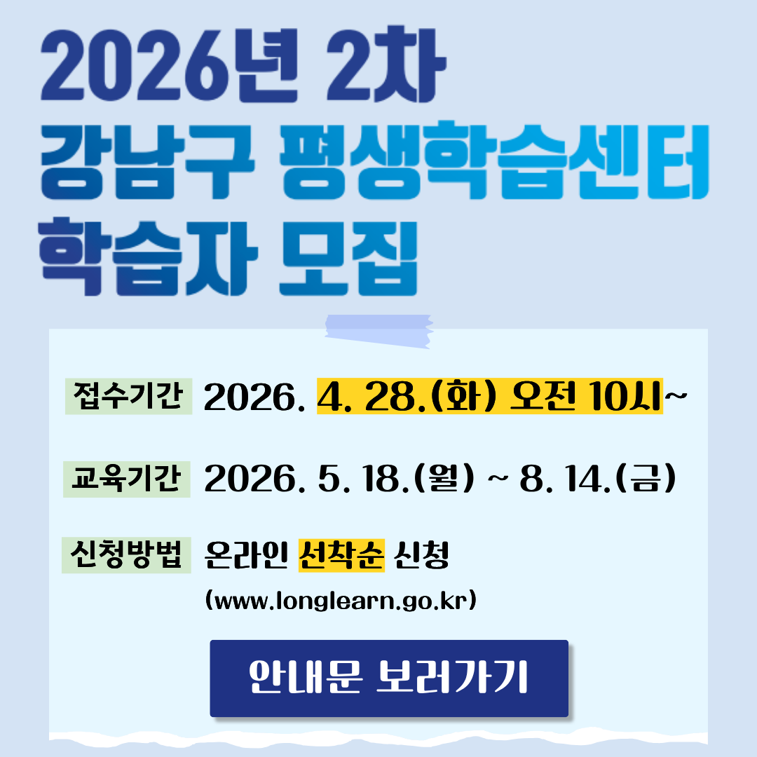 - 2026년 1차 강남구 평생학습센터(4개소) 학습자 모집 안내 2025-12-24