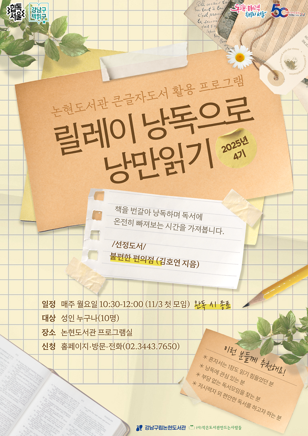[큰글자도서 활용 프로그램] 2025 릴레이 낭독으로 낭만 읽기 4기 강납구립논현도서관