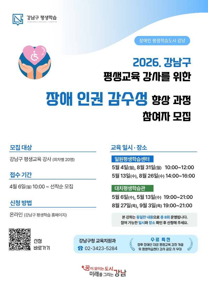 - 강남구 평생학습센터 참여 안내 [책임있는 신청, 꾸준한 출석] 2026-01-21