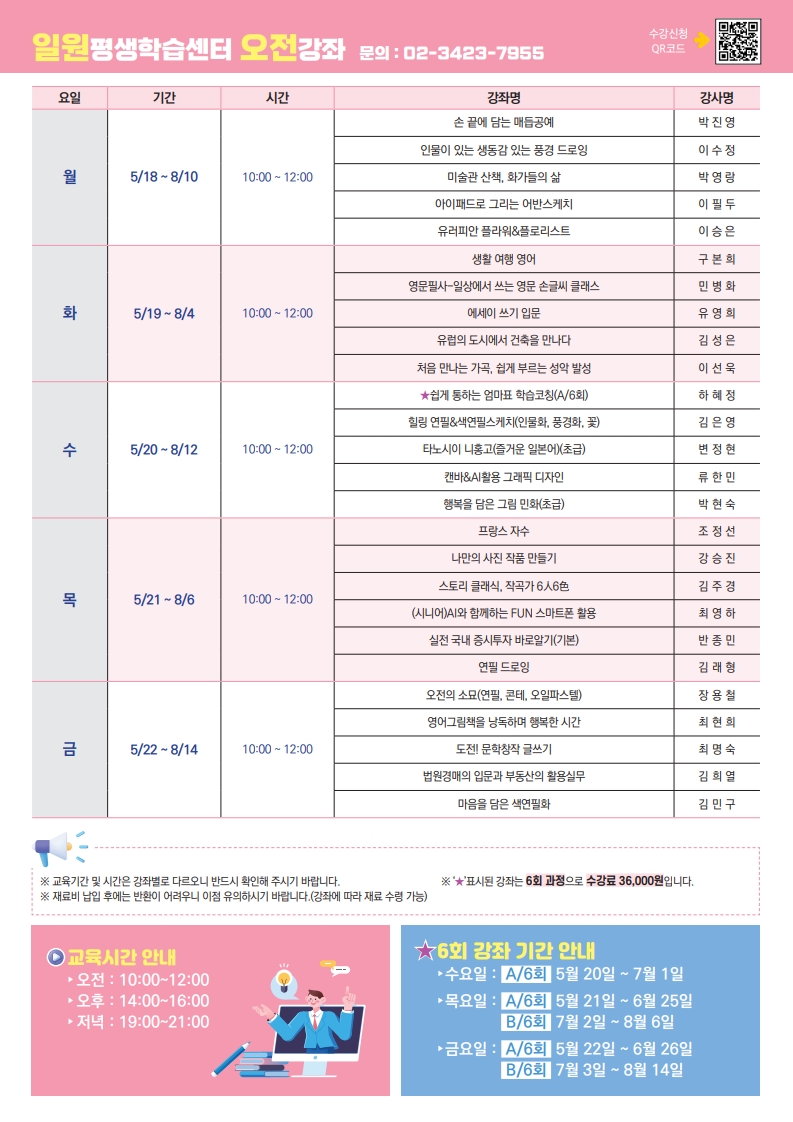 강남구 평생학습센터 참여안내 책임있는 신청, 꾸준한 출석 -