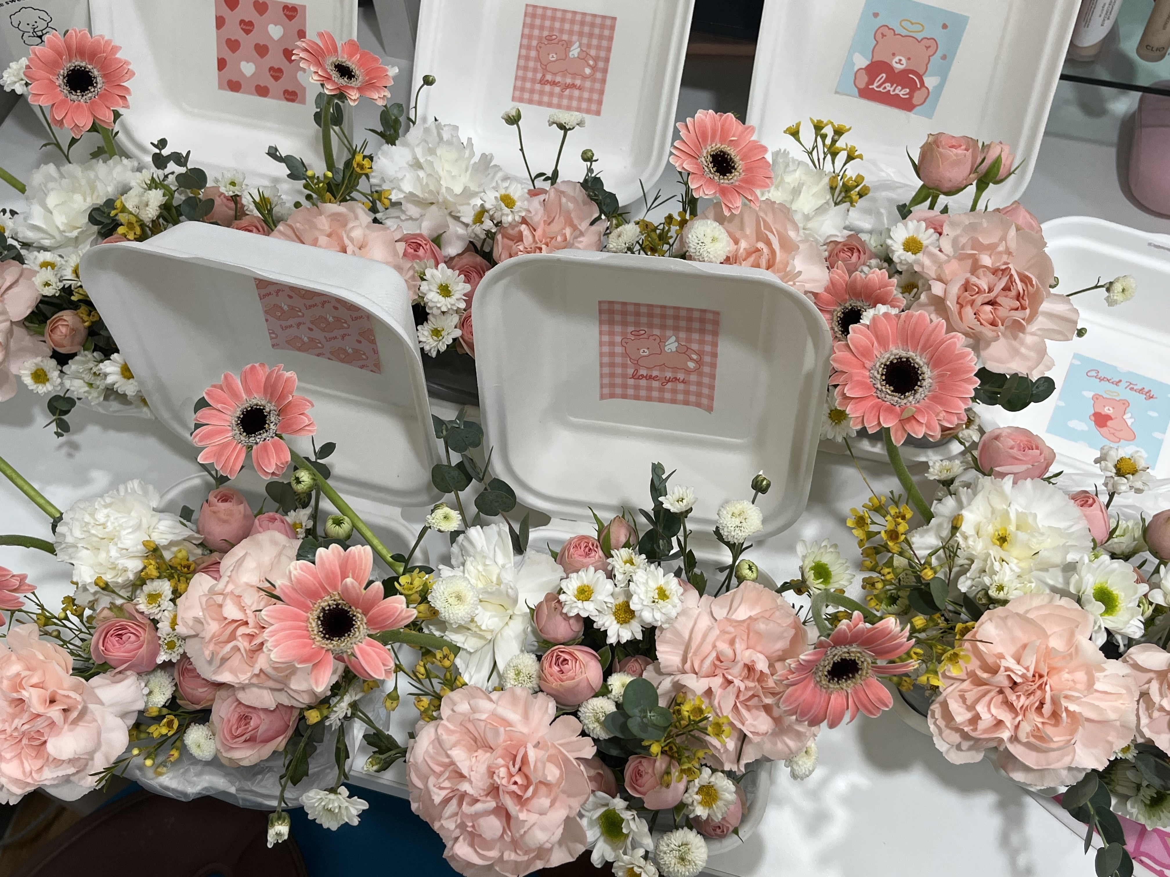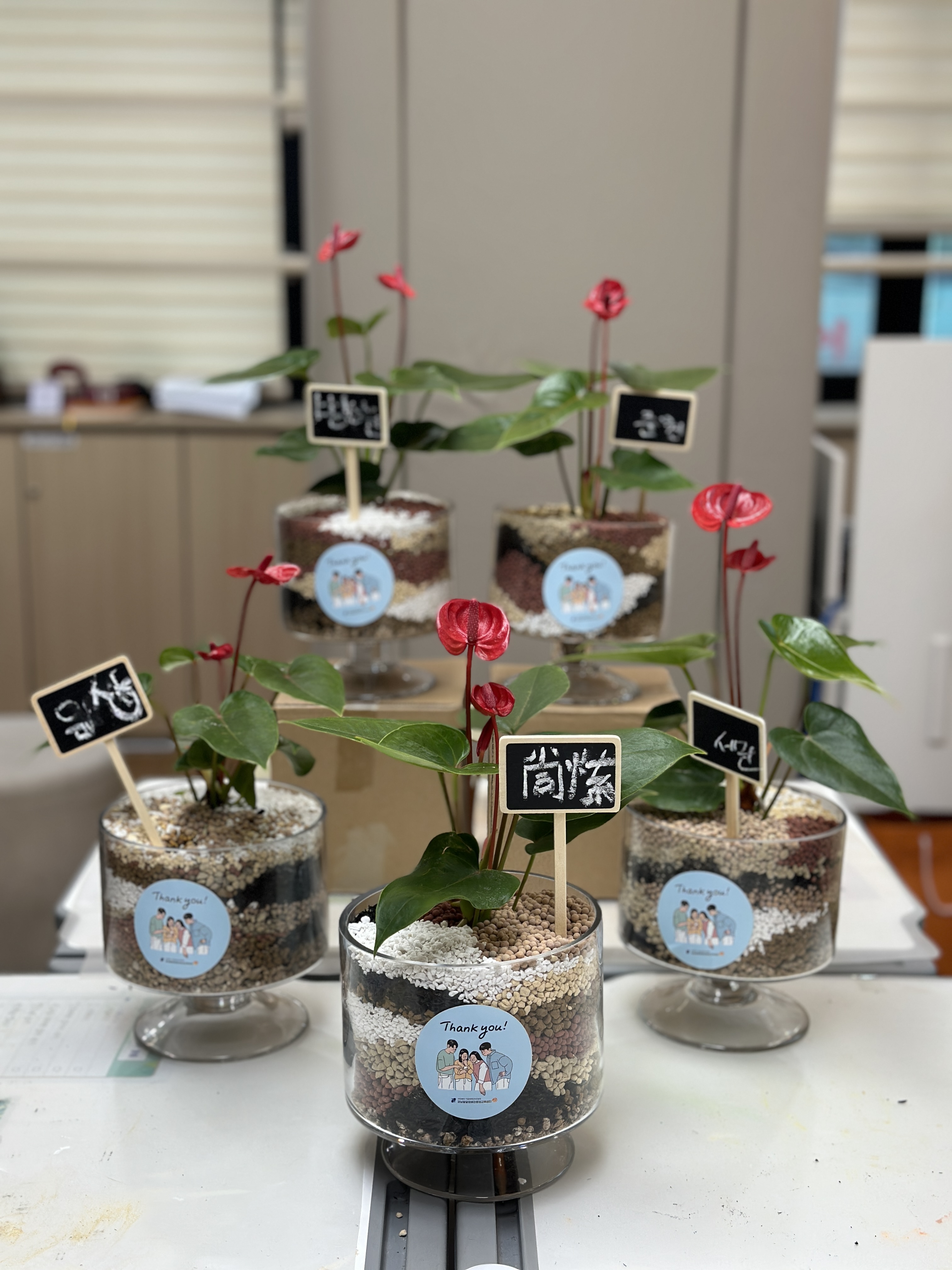 싱그러운 생화를 활용하여 샌드위치 플라워박스, 안시리움 화분을 만들었습니다