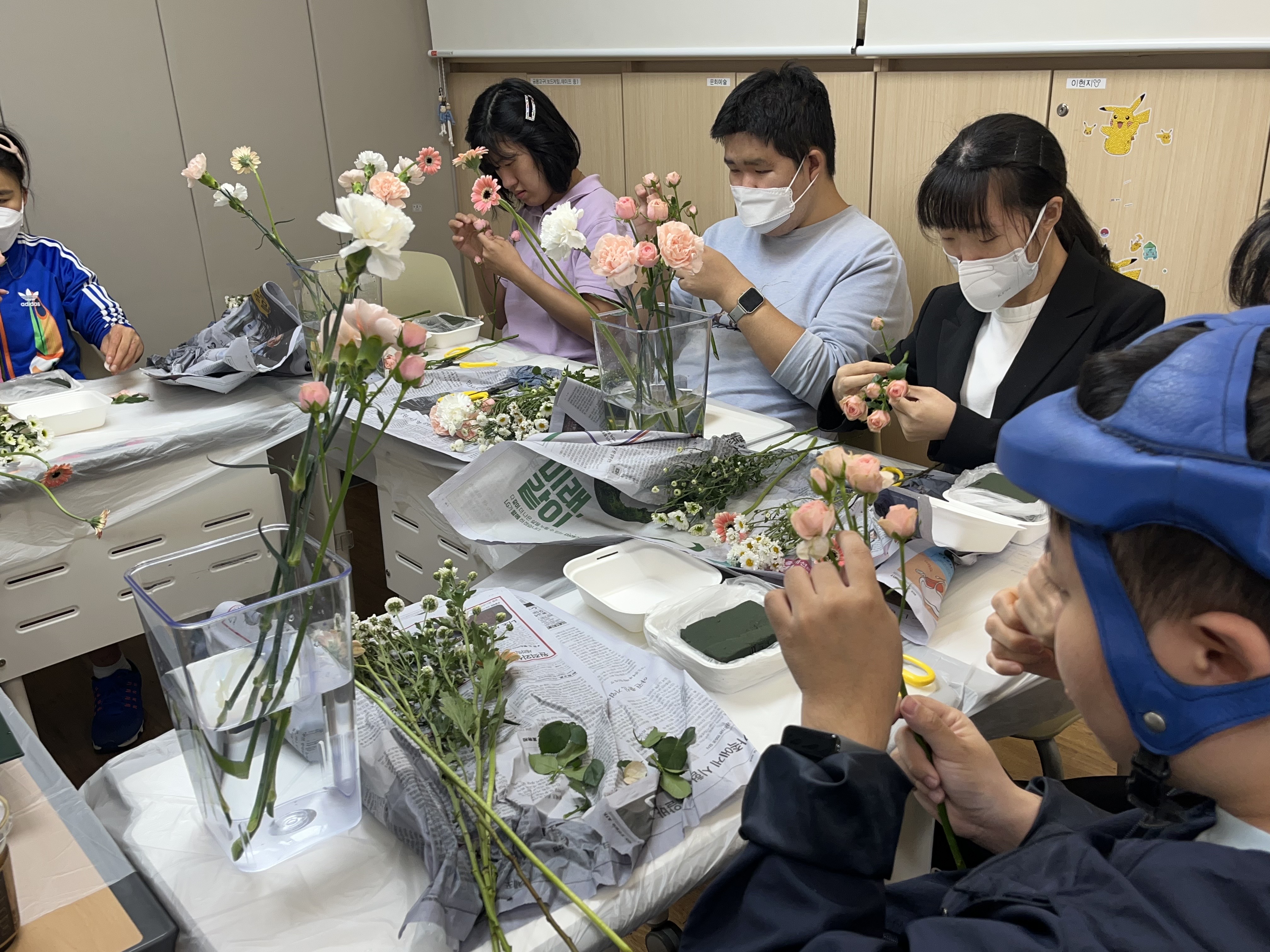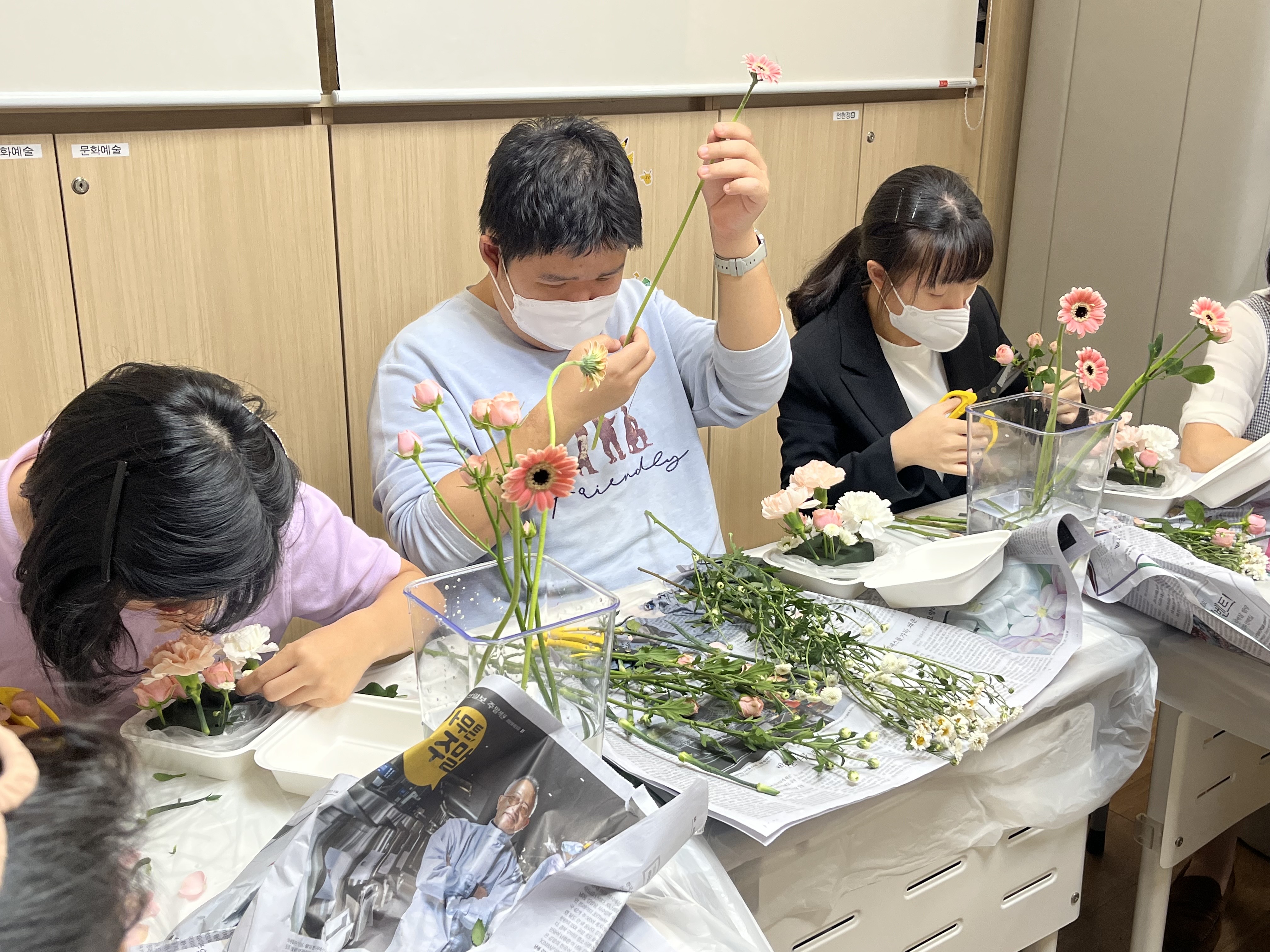 10월 문화예술은 ‘꽃’을 주제로 외부 전문강사와 함께 플라워 원데이클래스 수업을 진행하였습니다.