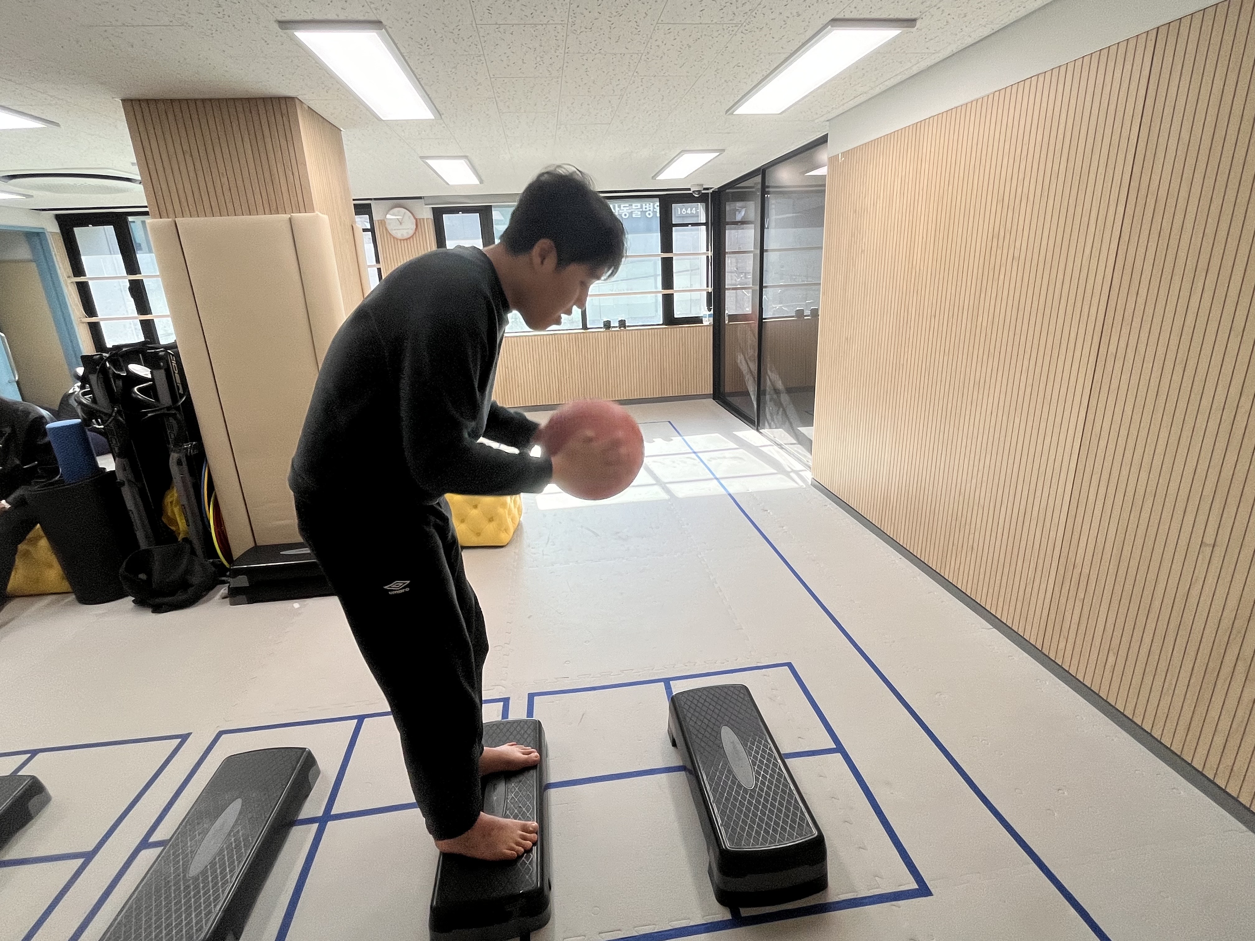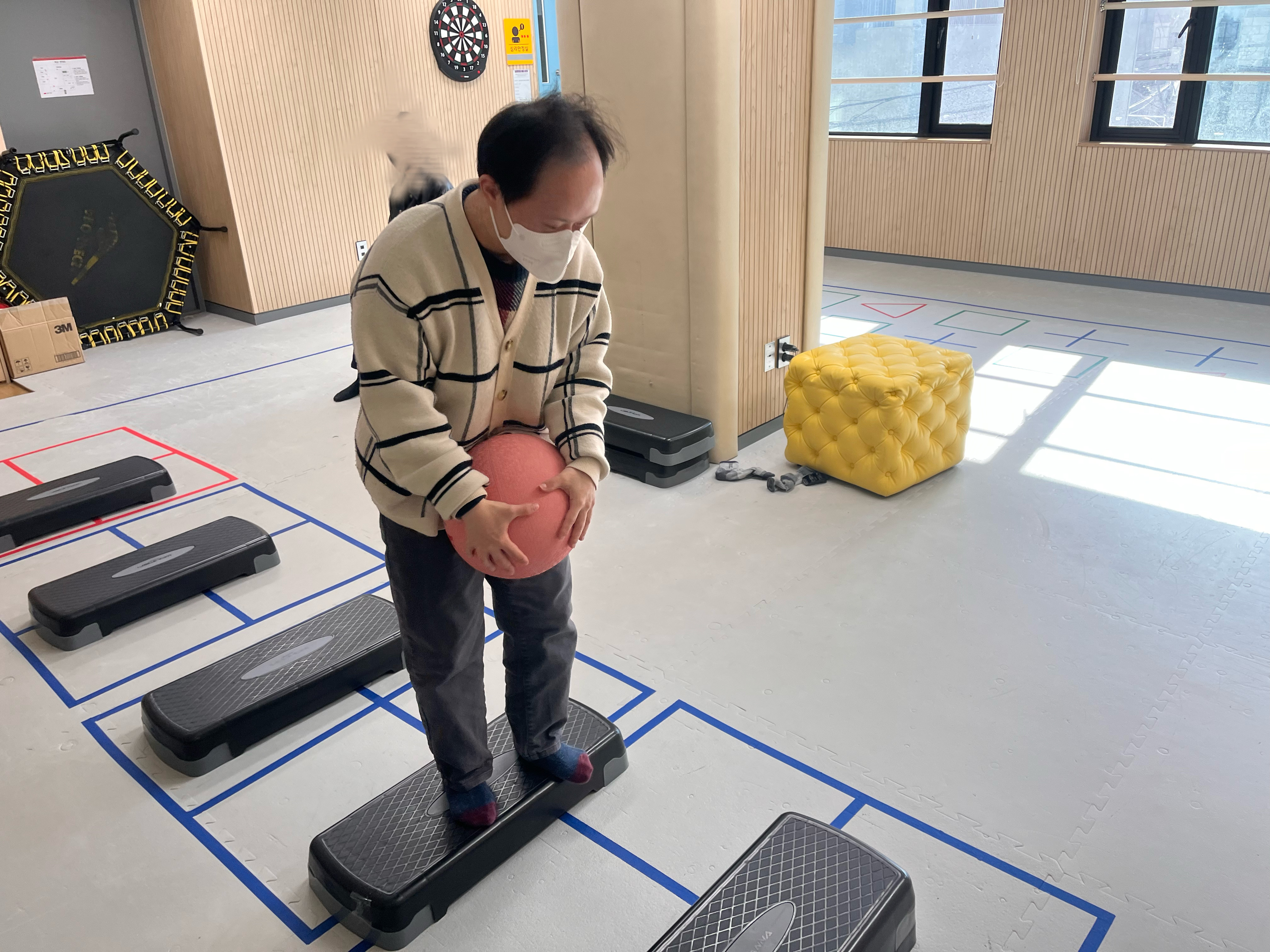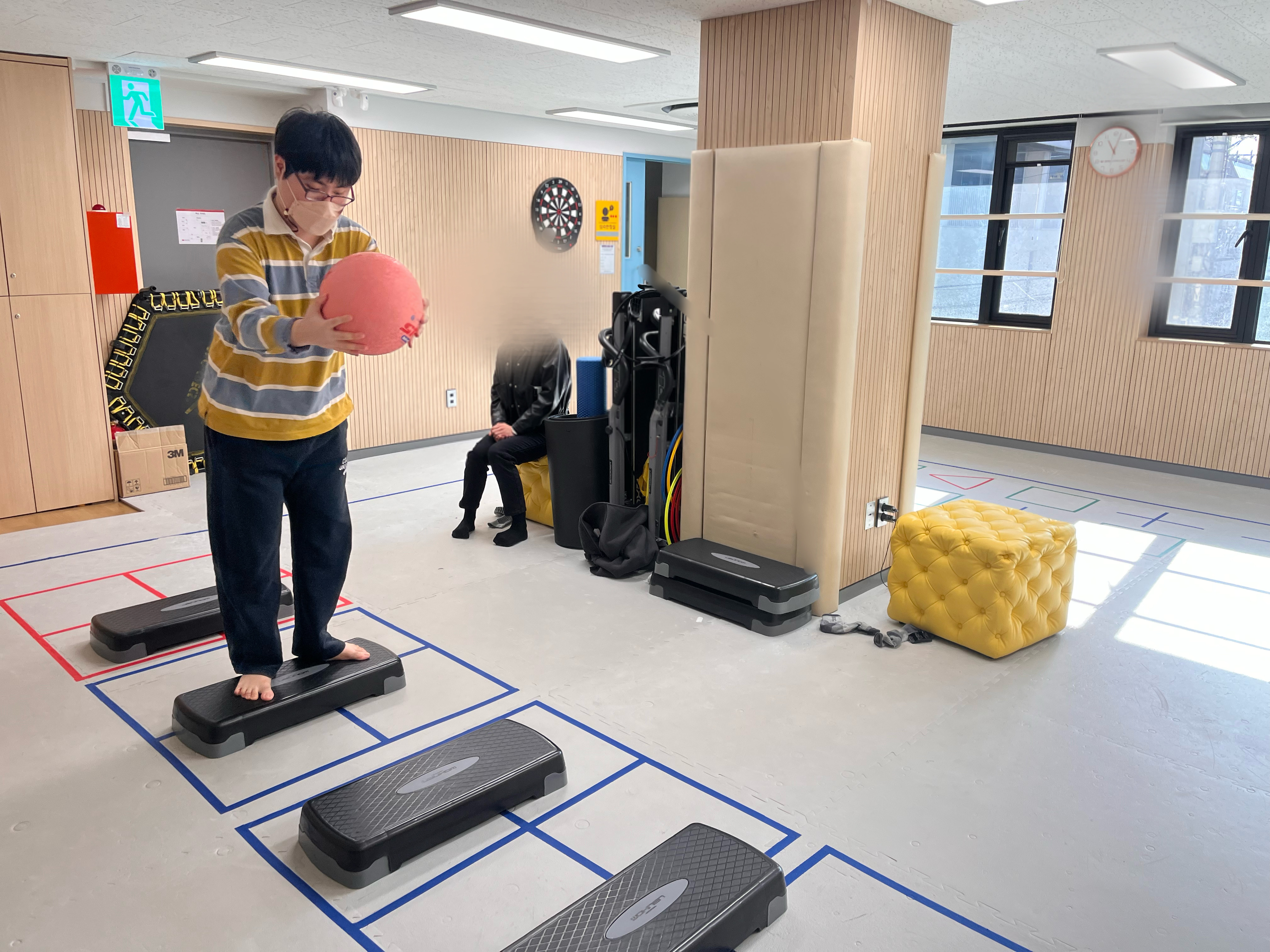 정해진 표적에 공을 맞추고 이동하며 힘 조절과 타이밍 관련한 운동을 진행하였습니다.