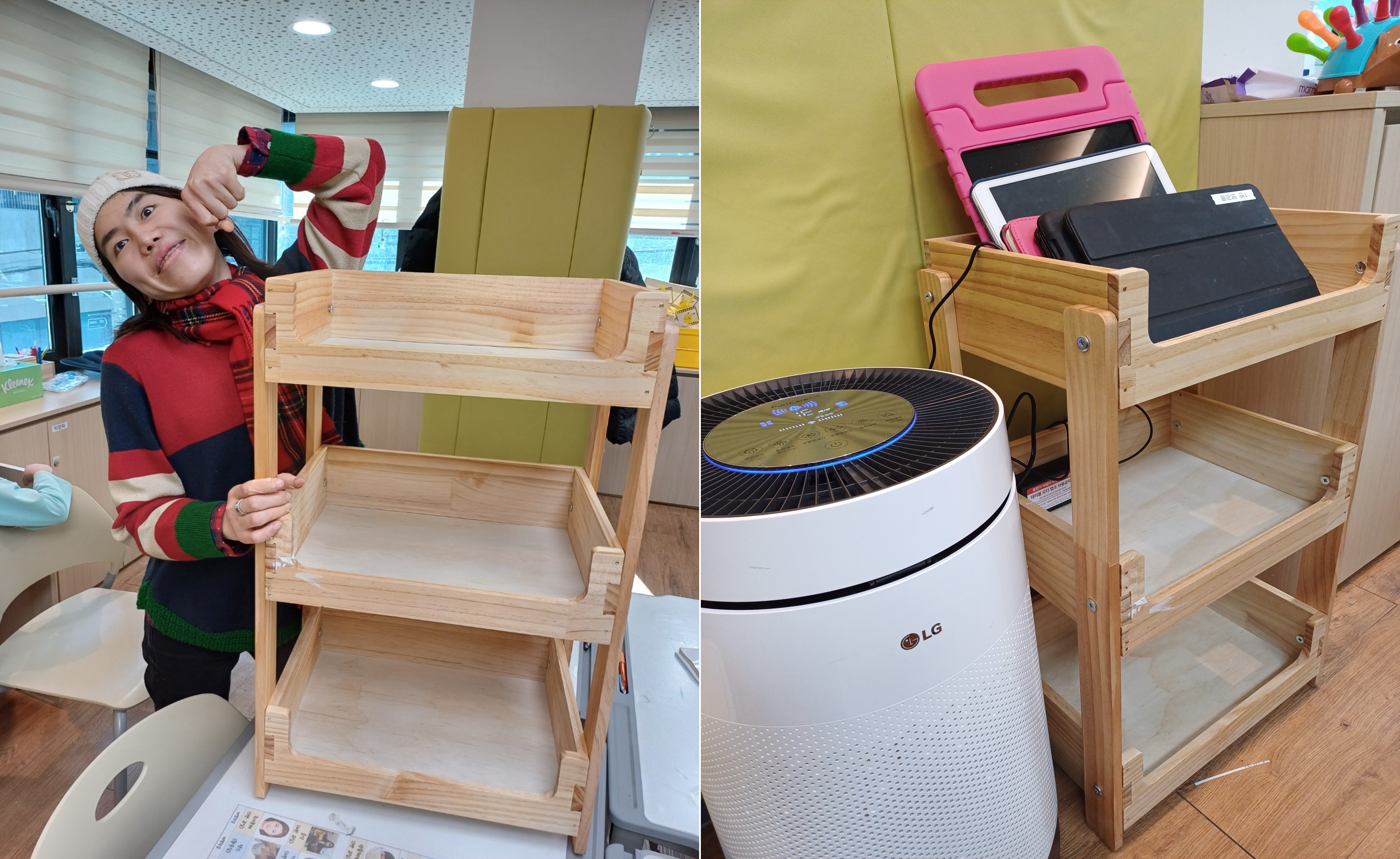 따뜻한 봄이 찾아오는 3월, 우리가 직접 제작한 다육식물(화분), 3단 선반을 깨끗하게 청소한 공간에 배치하여