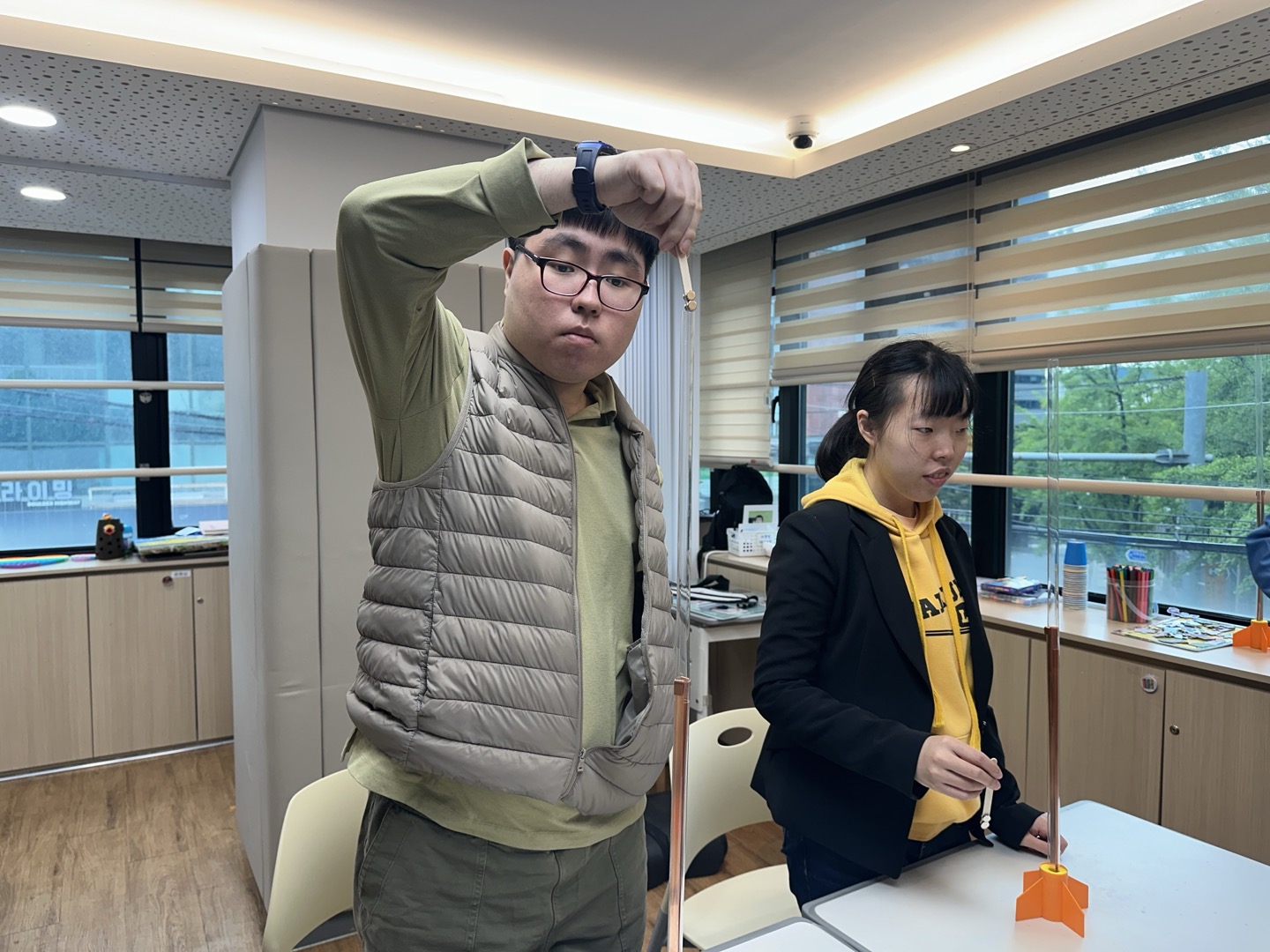 직접 자이로드롭 모형을 만들어보고 자성에 의한 작동 원리를 이해하며 즐거운 시간을 보냈습니다.