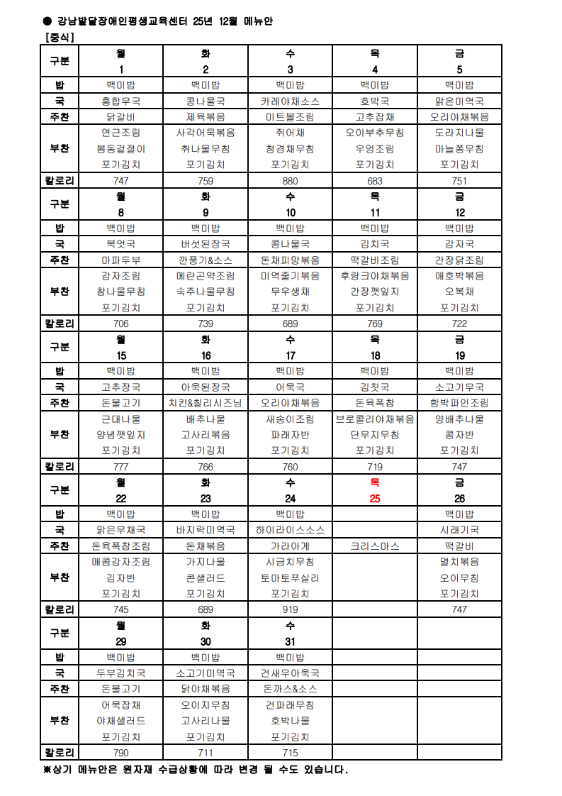 2025년 12월 식단