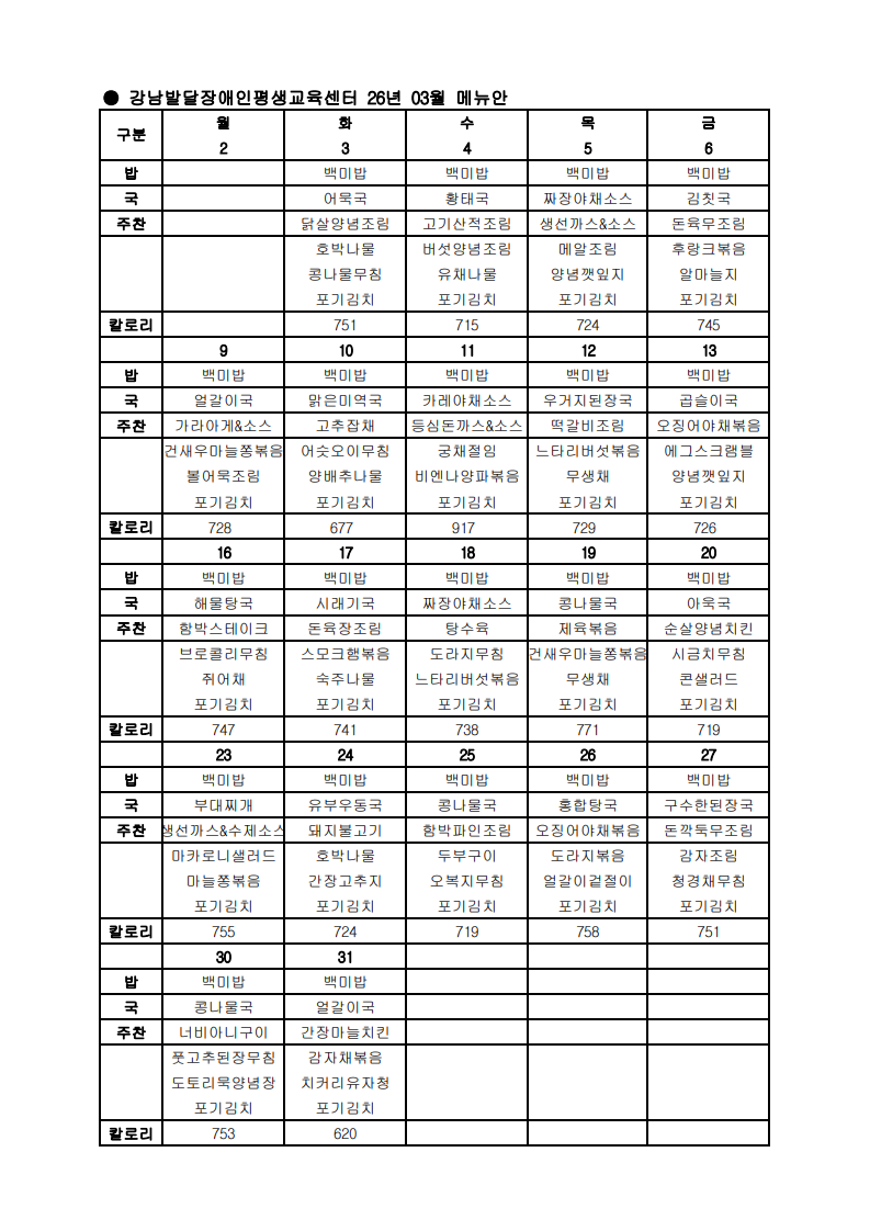 2026년 3월 식단
