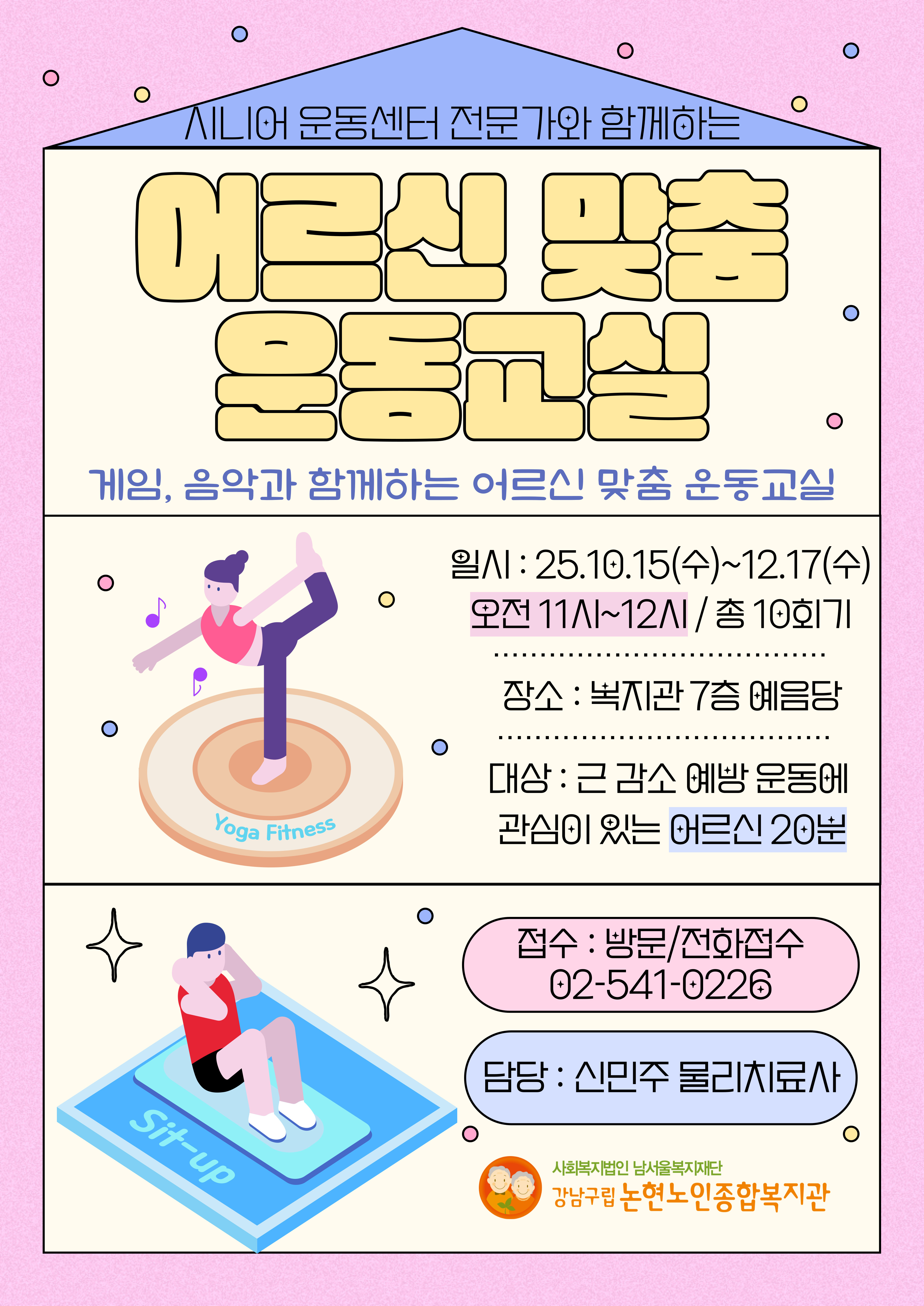 2025 어르신 맞춤 운동교실 모집안내[건강생활지원사업]