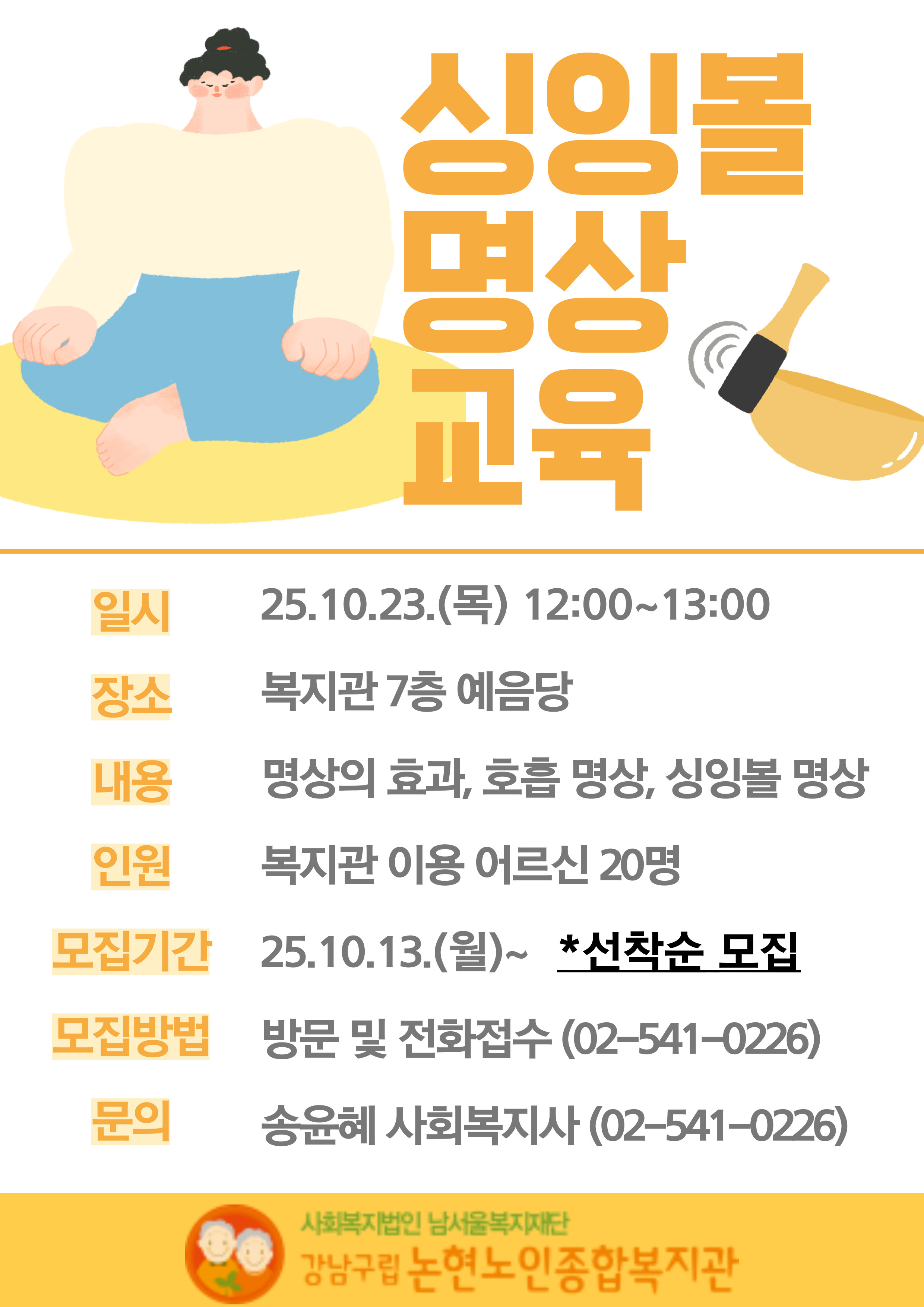 싱잉볼명상교육 참여자 모집 [상담 및 정서생활지원사업]