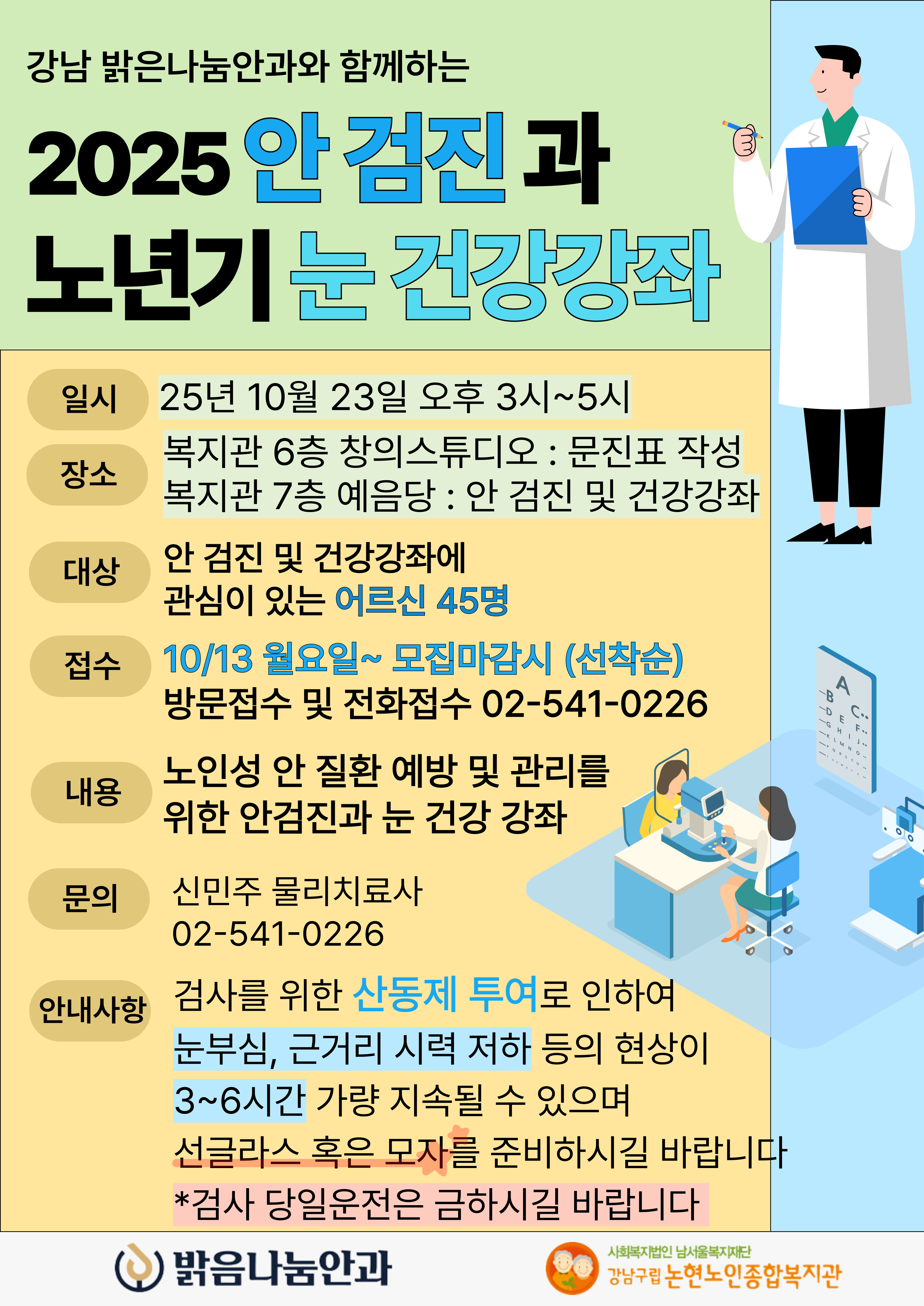 2025년 하반기 밝음나눔안과와 함께하는 안 검진 및 강좌 모집안내[건강생활지원사업]