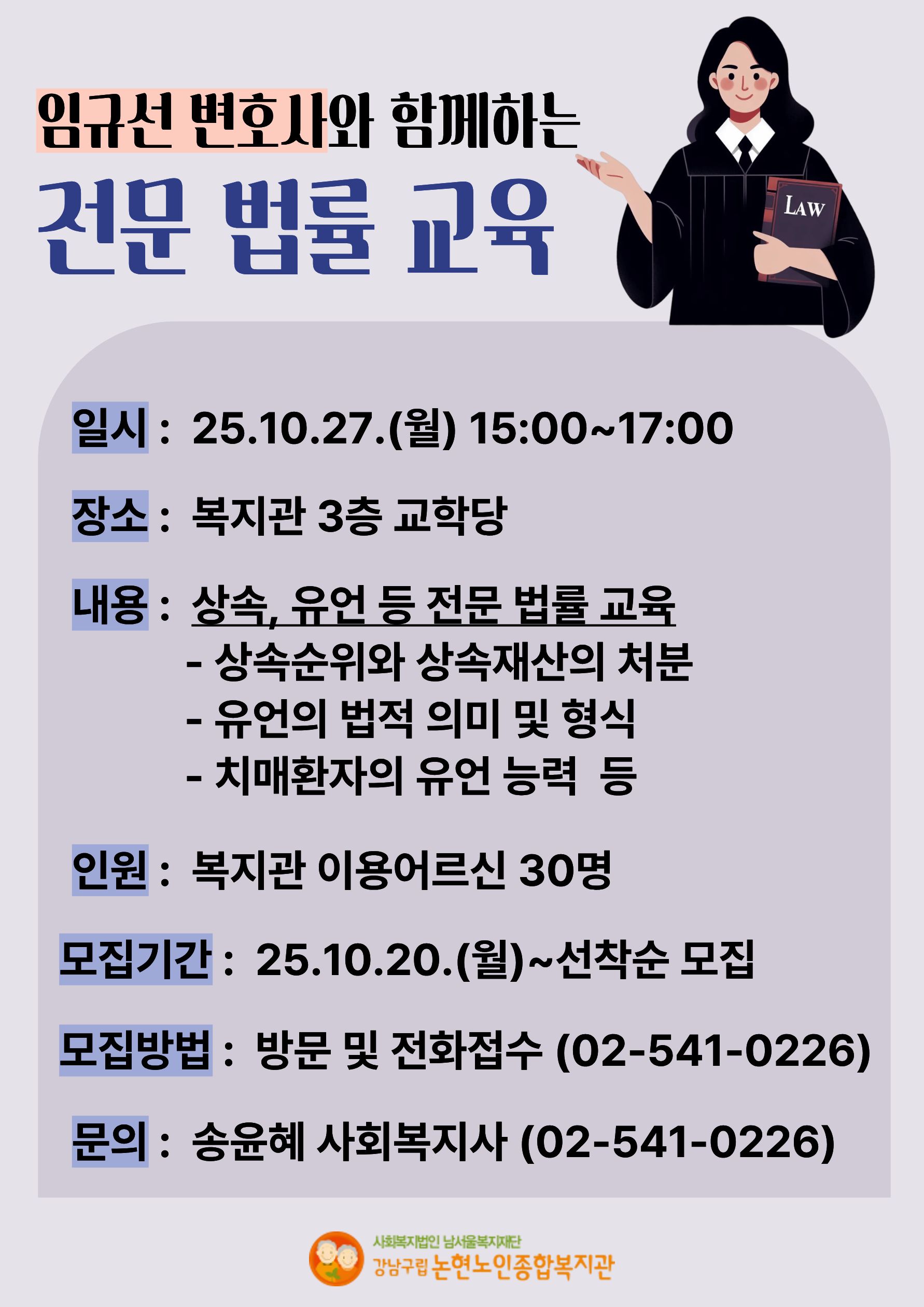 전문법률교육 참여자 모집 [상담 및 정서생활지원사업]