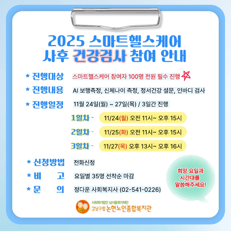 2025 스마트헬스케어 건강검사(사후) 진행 안내 [스마트헬스케어사업]