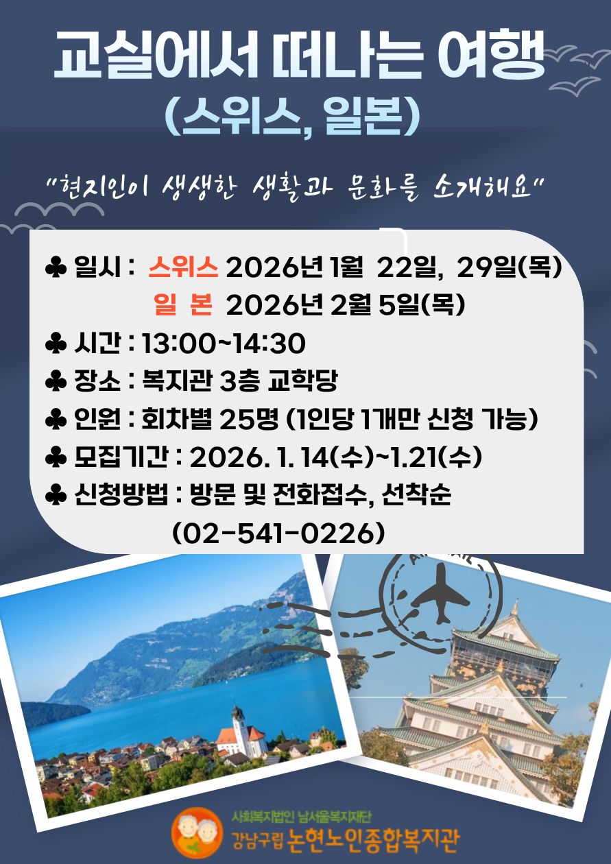 교실에서 떠나는 여행 특강 참여자 모집 [평생교육및취미여가지원사업]