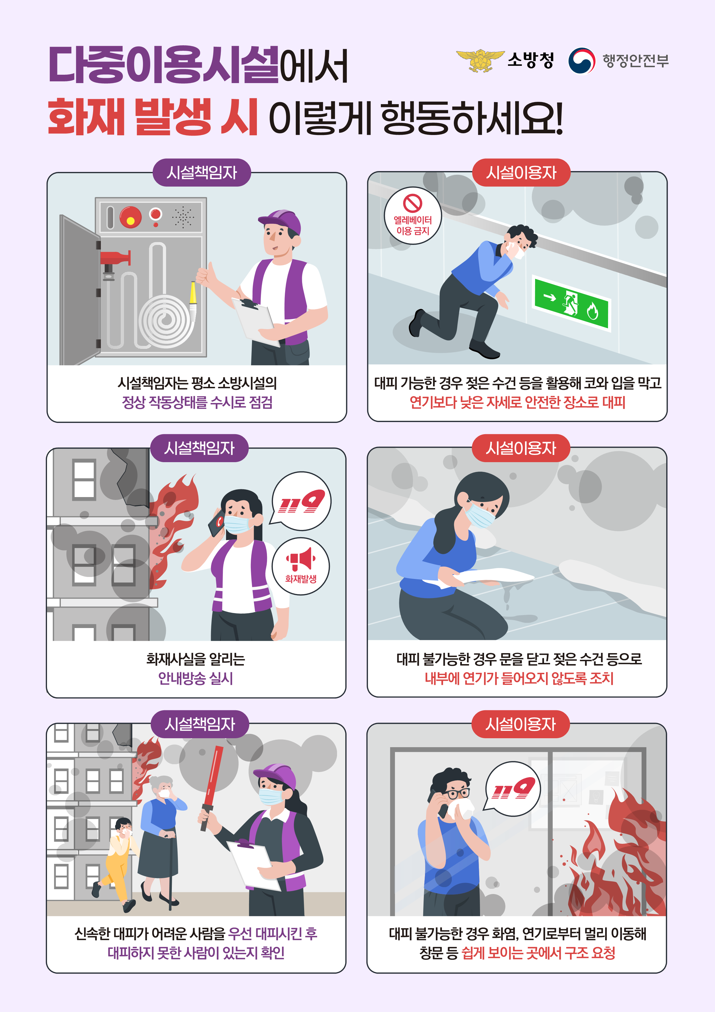 연기보다 낮은 자세로 안전한 장소로 대피해야 합니다.