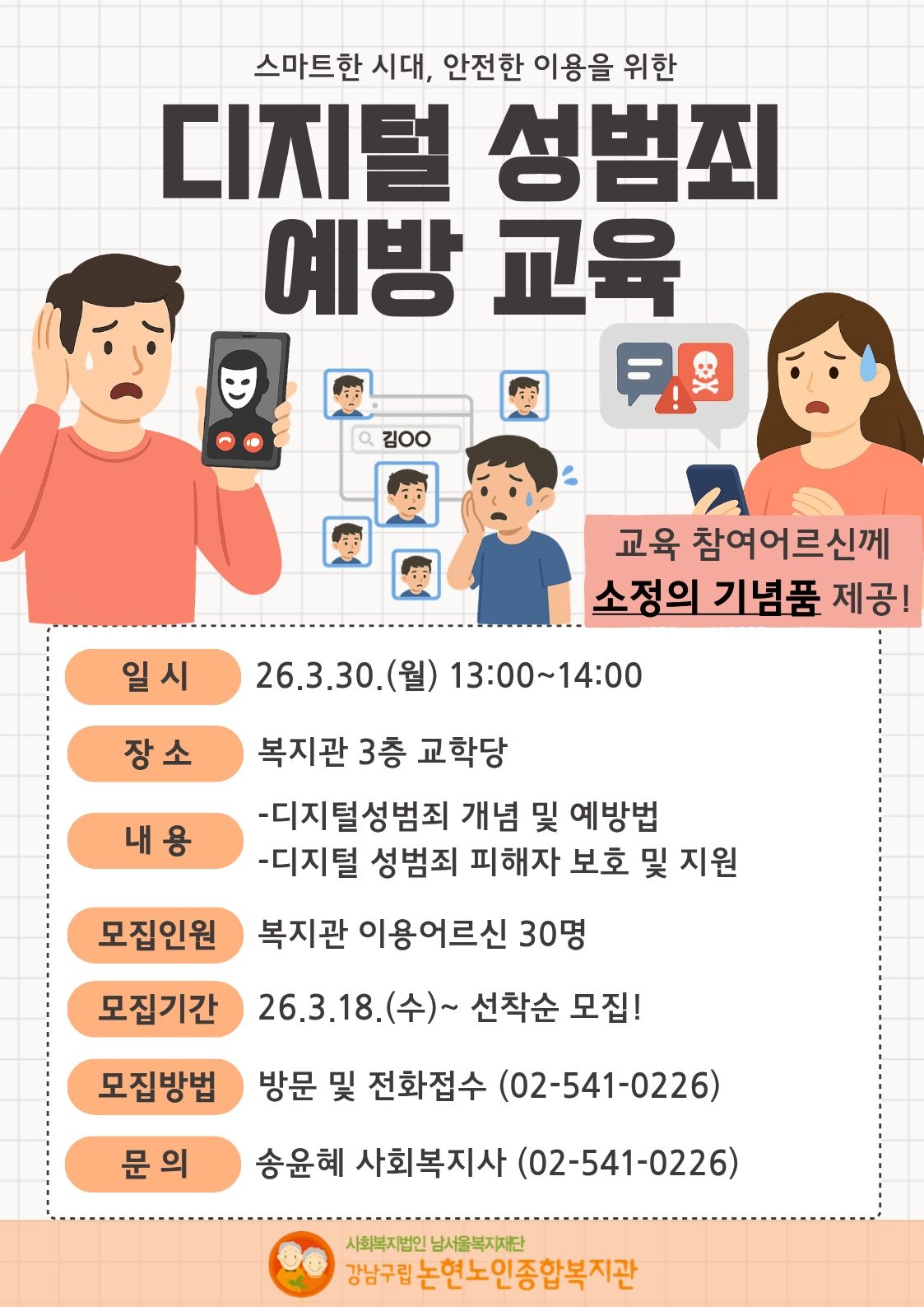 디지털 성범죄 예방 교육 참여자 모집 [상담 및 정서생활지원사업]