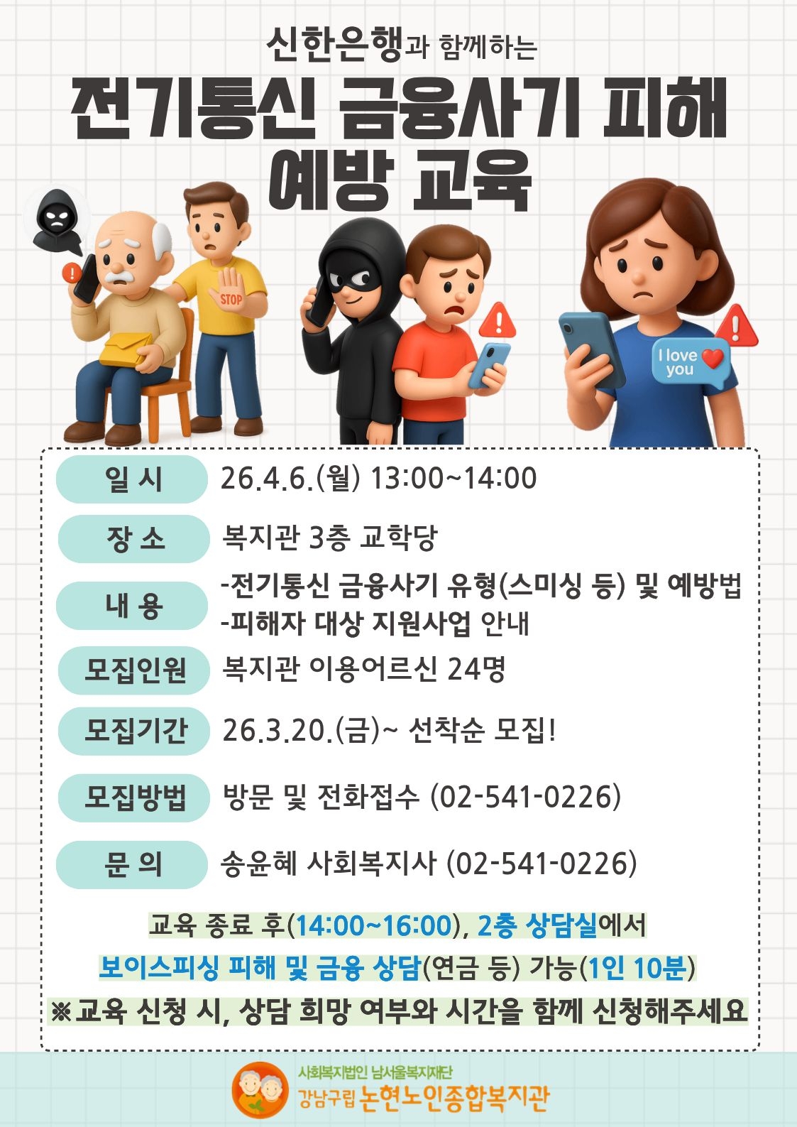 전기통신 금융사기 예방 교육 참여자 모집 [상담 및 정서생활지원사업]