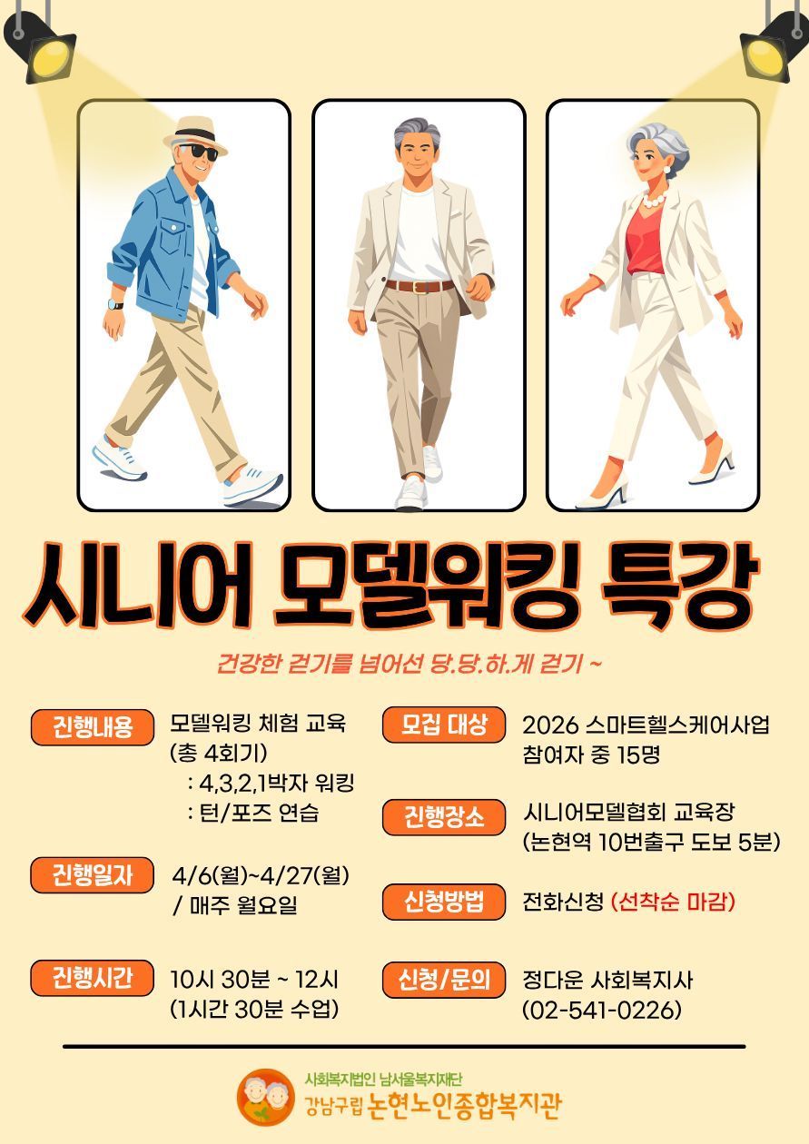 시니어 모델 워킹 특강 참여자 모집 안내 [스마트헬스케어사업]