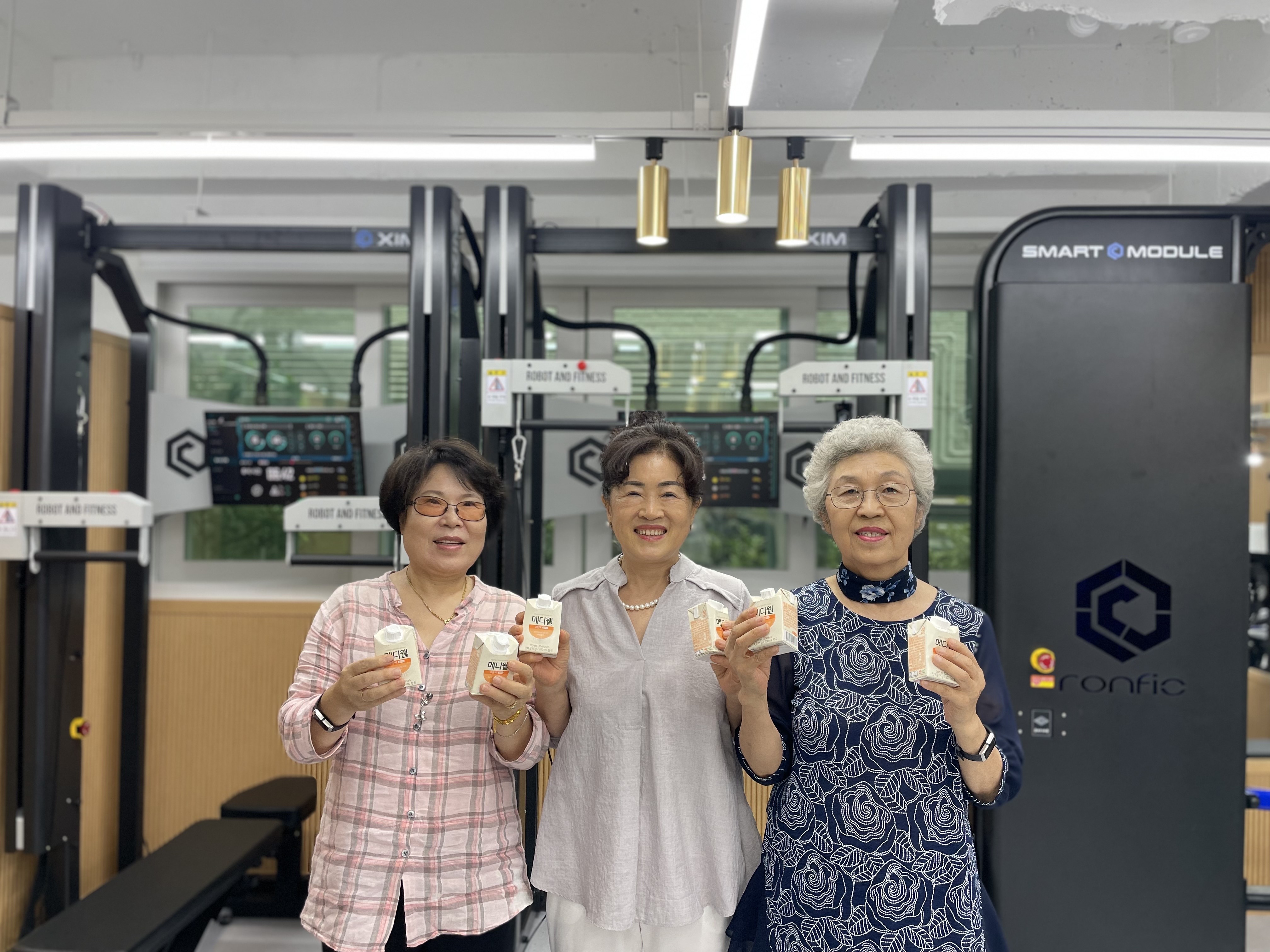 근 감소증 예방을 위하여 열심히 운동하시는 어르신들께 음료를 제공해 드렸습니다.