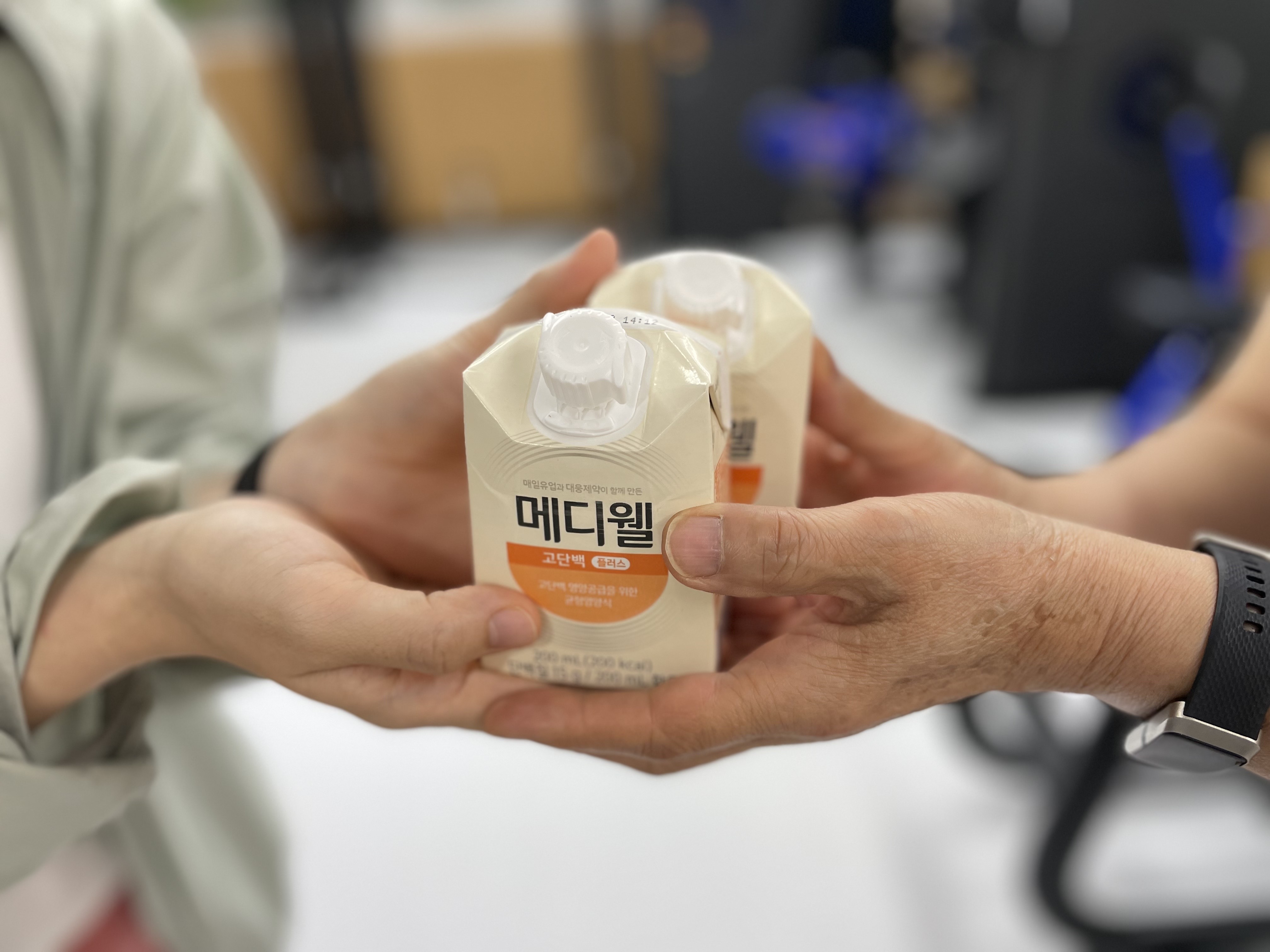 매일유업의 단백질 음료인 메디웰을 전달해 드렸습니다.