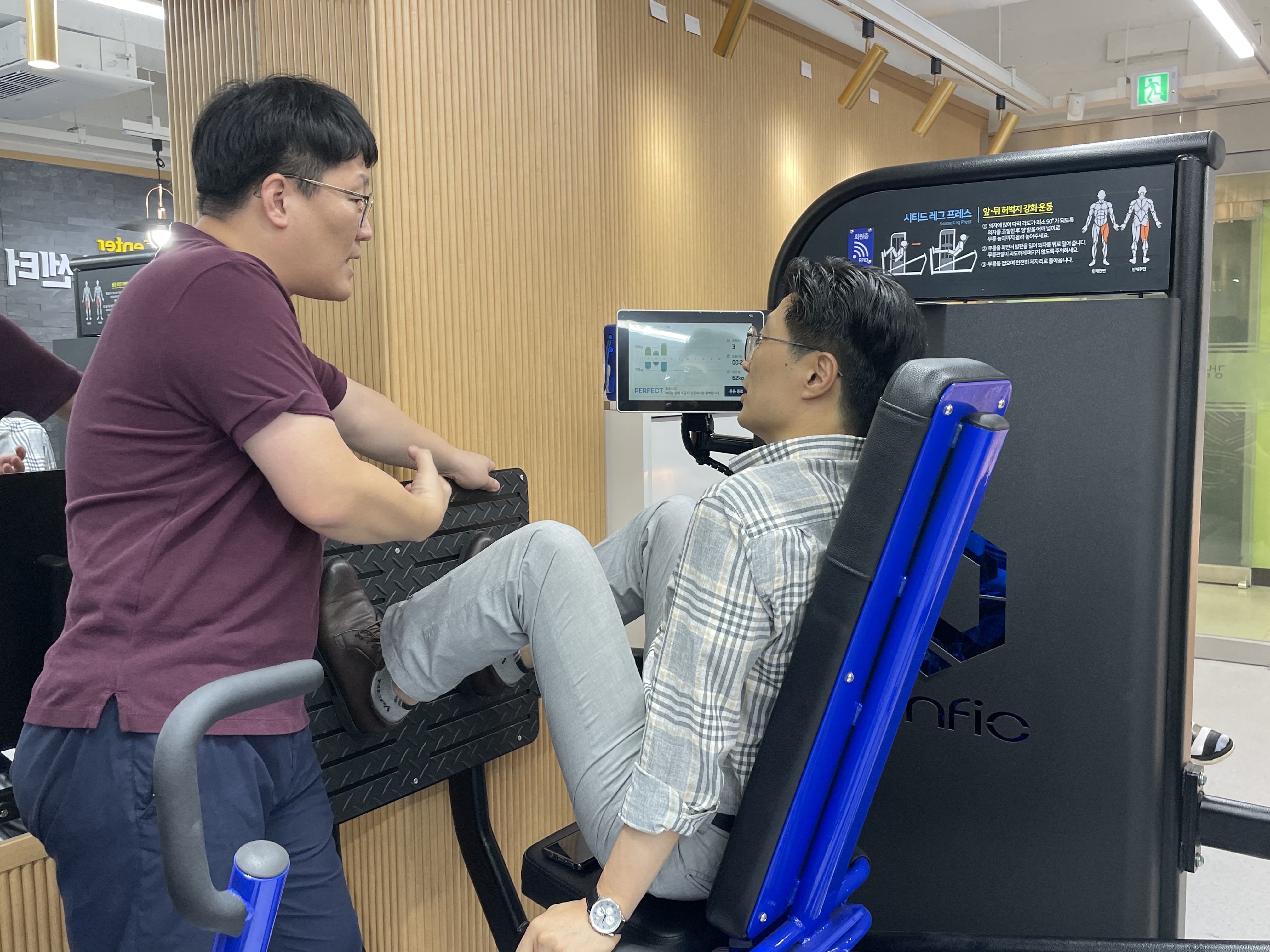 저희 논현노인종합복지관에서는 6월 19일부터 스마트 피트니스센터를 시범 운영과 함께
