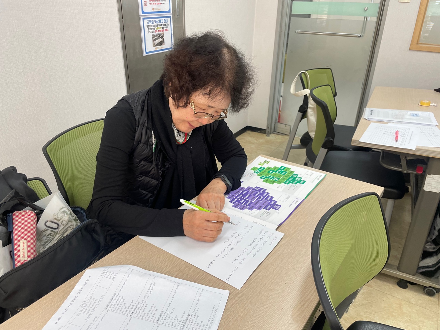 어르신들께서 자신의 유형이 어디에 속하는지 열심히 필기를 하시면서