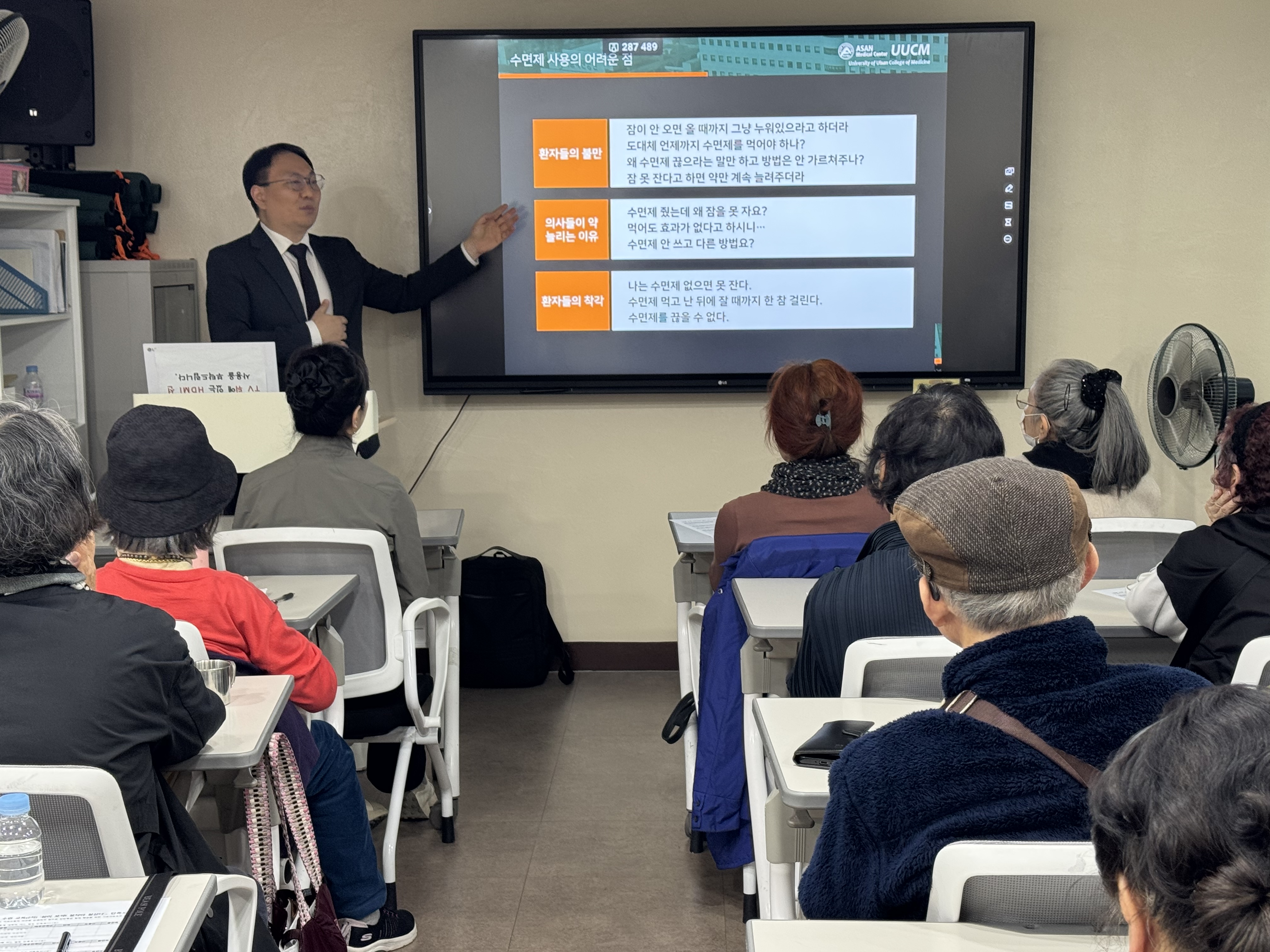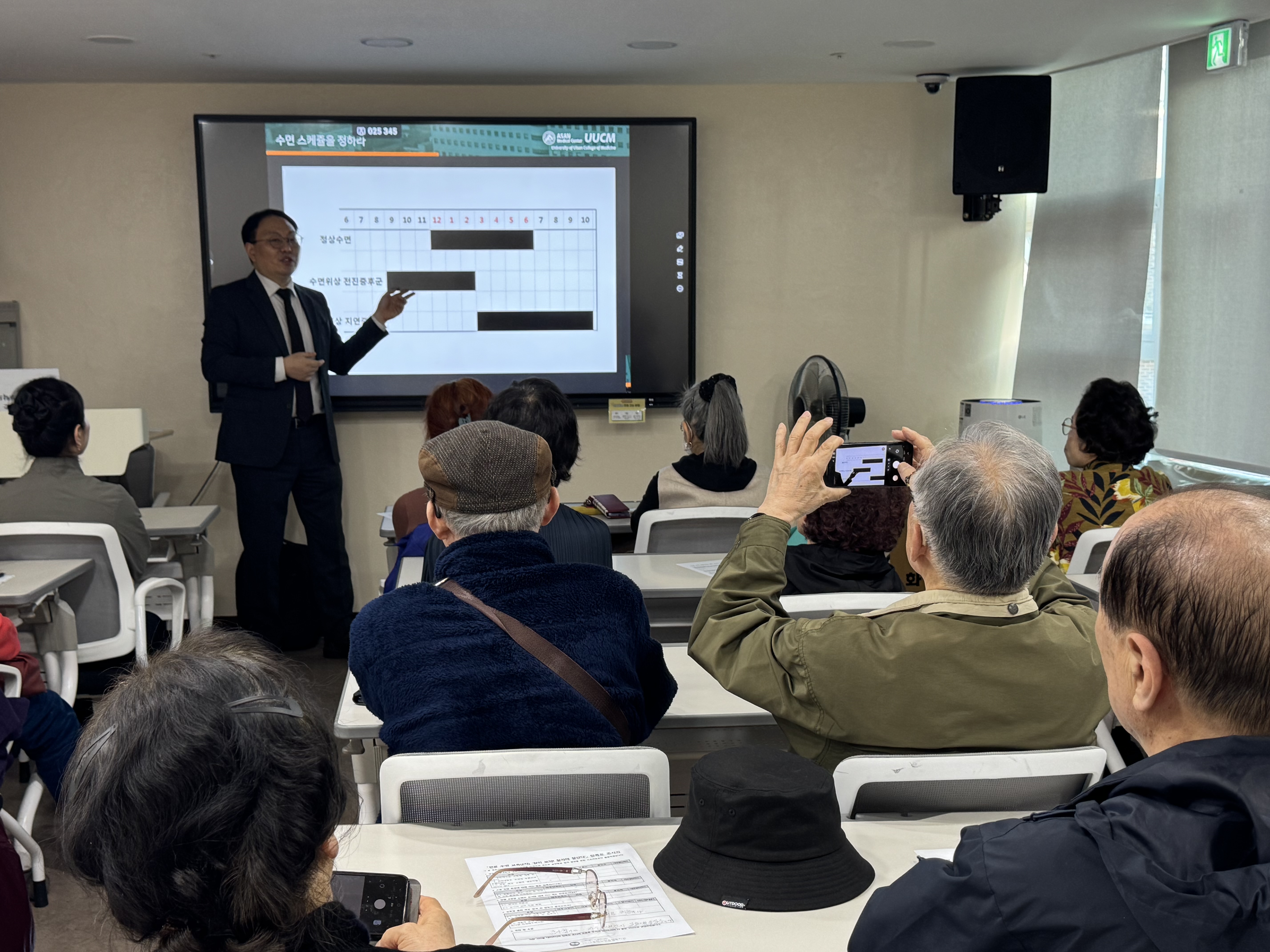 11월 6일(목), 복지관 3층 교학당에서 어르신들의 숙면을 돕기 위한 「전문 수면 교육(2차)」이 진행되었습니다.
