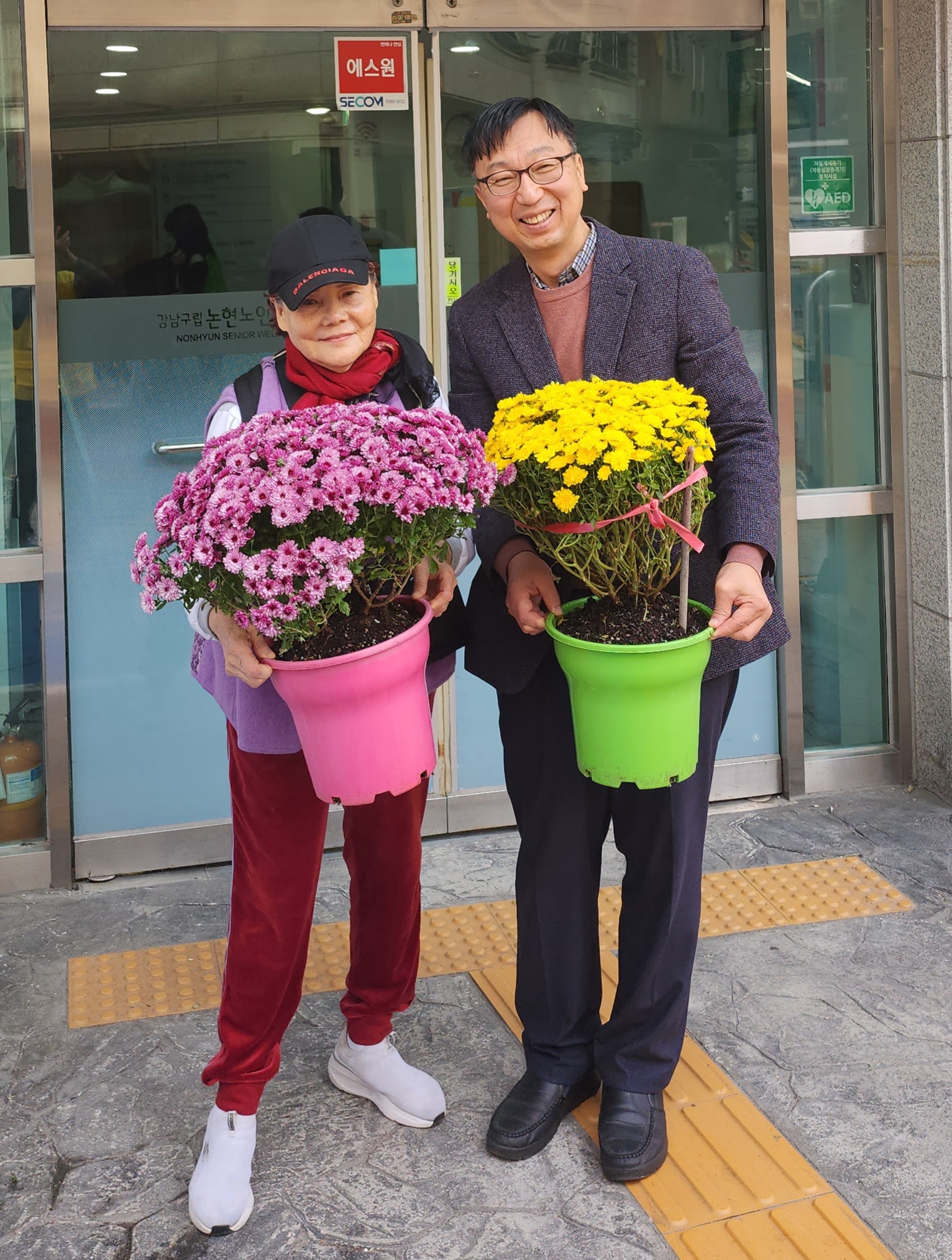 복지관 입구에서 노오란 국화는 어르신들을 반가운 미소로 맞이하고,