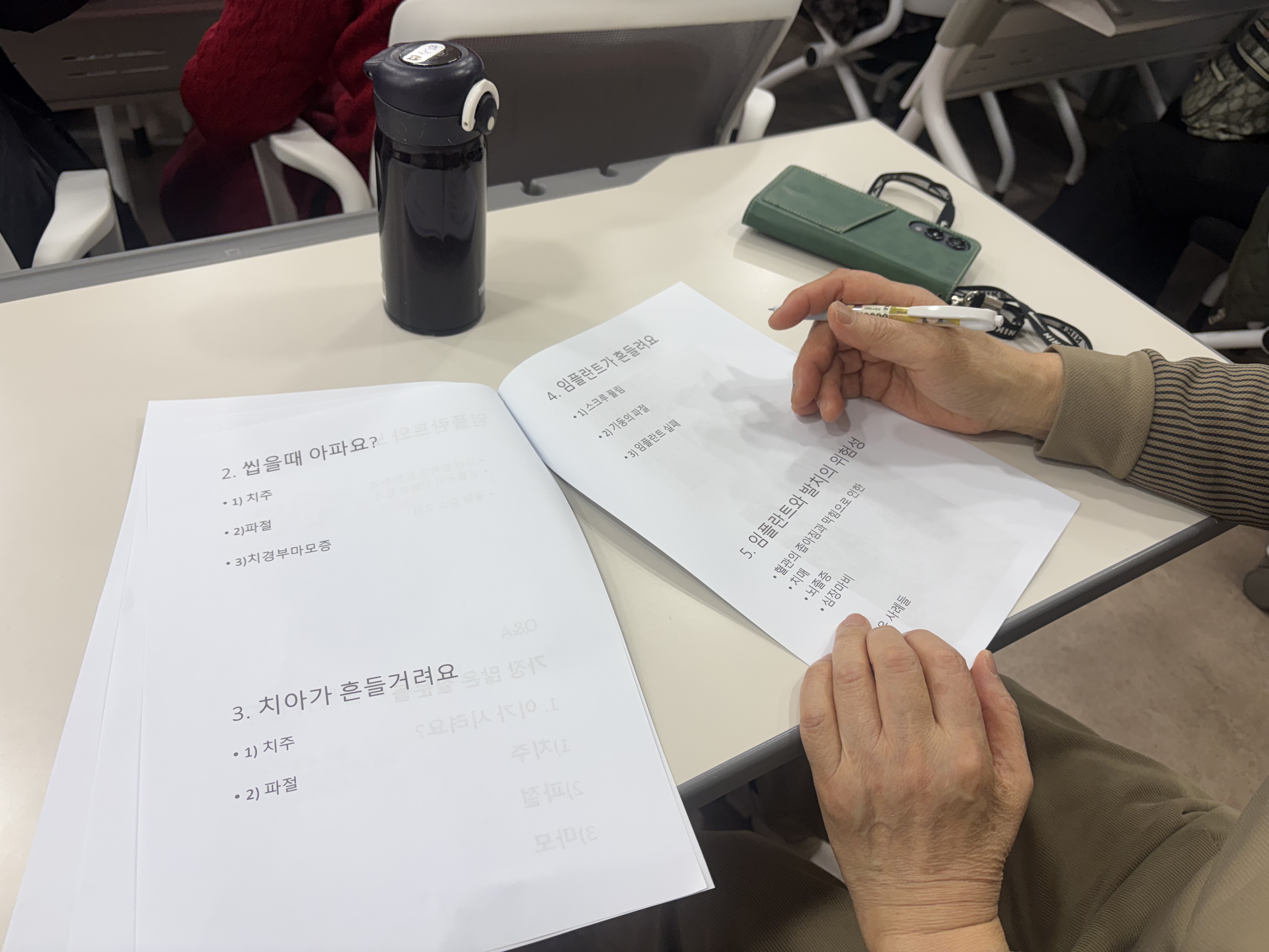 시니어의 건강한 치아와 잇몸관리 건강강좌가 진행되었습니다.