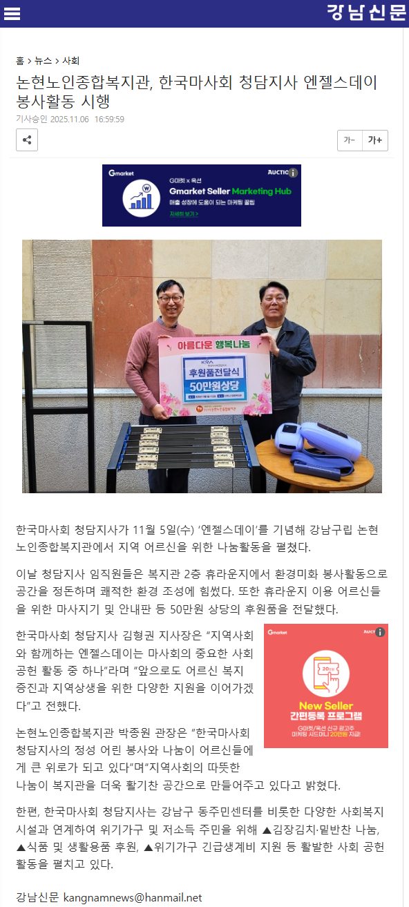 [강남신문]논현노인종합복지관, 한국마사회 청담지사 엔젤스데이 봉사활동 시행