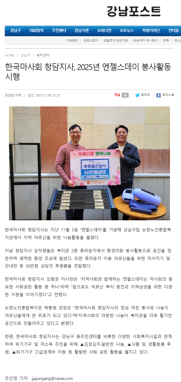 [강남포스트]한국마사회 청담지사, 2025년 엔젤스데이 봉사활동 시행